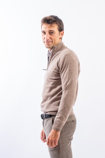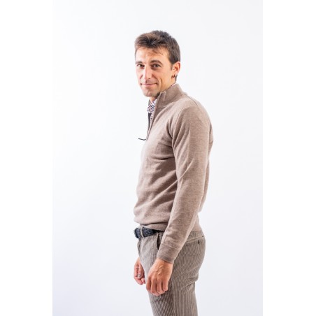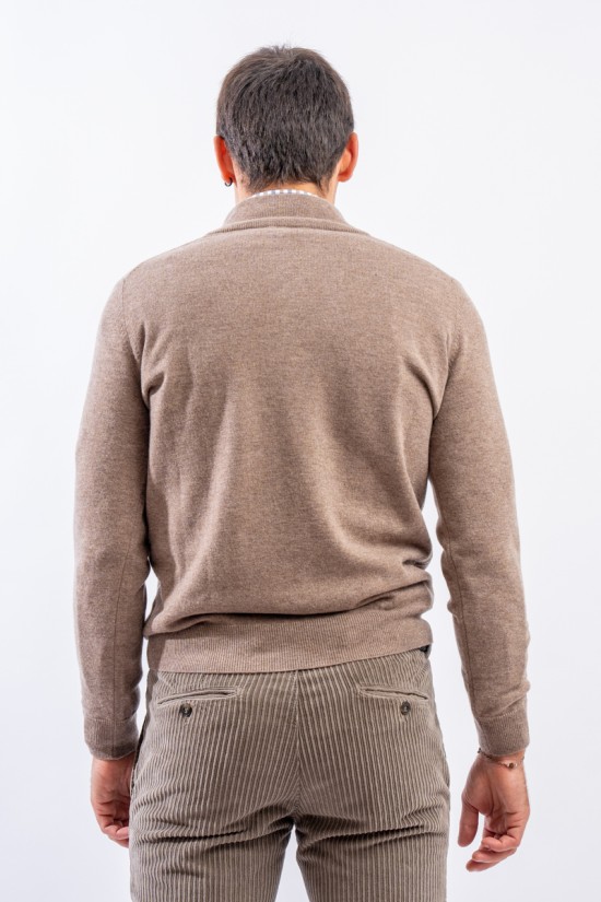 Maglia a collo in piedi con chiusura a mezza zip. Realizzata in lana 100% è calda, leggera e morbida al tatto. Arricchita da una lavorazione a costina stretta sul fondo, collo e polsini. Confortevole e pratica è ideale nella quotidianità. Made in Italy.