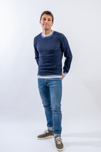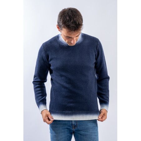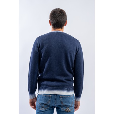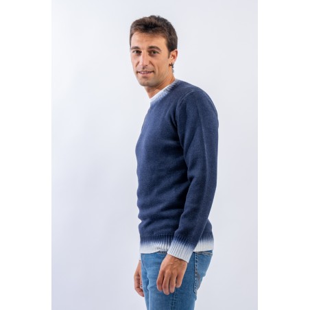 Maglia girocollo rasato calato firmato Kangra. Versatile e raffinata è realizzata in 100% lana. Calda e morbida è arricchita da una tintura sfumata e dalla lavorazione a coste elasticizzate sul fondo, girocollo e maniche. Vestibilità regular è ideale per ogni occasione. Made in Italy.