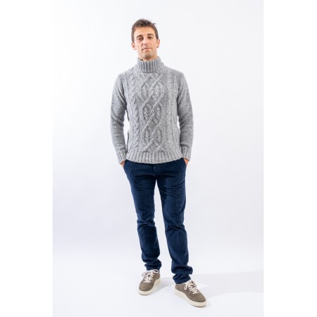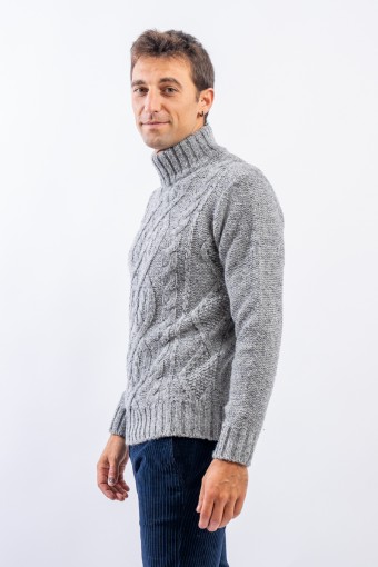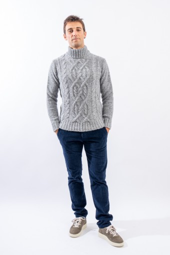Maglione realizzato su finezza 3 a più fili. Filato misto Lana con fantasia bottonata impreziosita dalla lavorazione norvegese. Morbido ha una vestibilità regolare. Il collo in piedi, i polsini ed il fondo sono lavorati a coste. Morbido e caldo è perfetto per completare ogni look nelle stagioni più fredde.