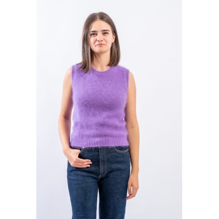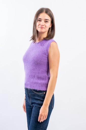 Maglia canotta girocollo senza maniche realizzata in morbida lana di angora dall'effetto peloso. Rifinita da fondi e polsi a costine. Vestibilità slim fit. Calda e confortevole, una coccola nelle fredde giornate invernale!