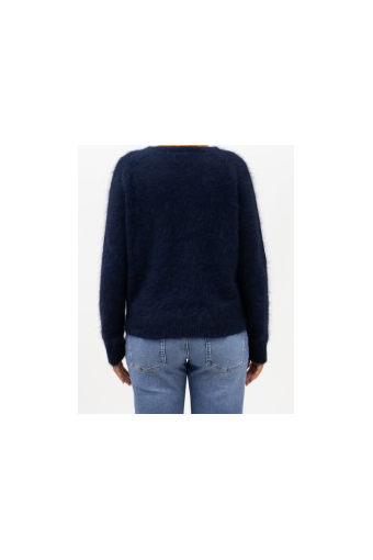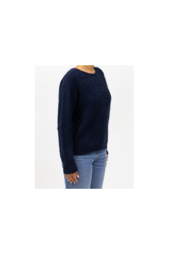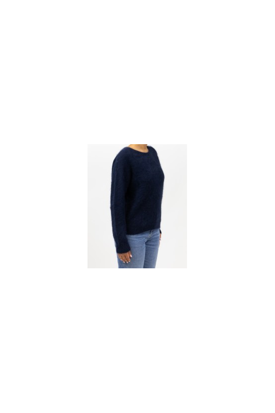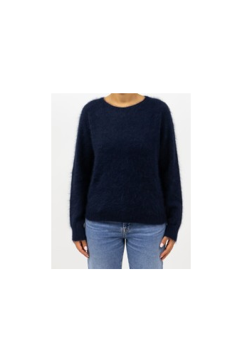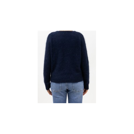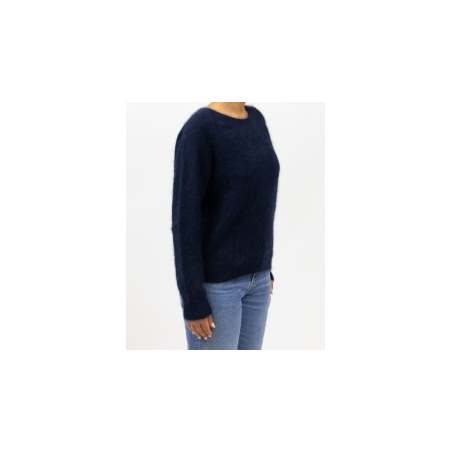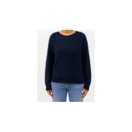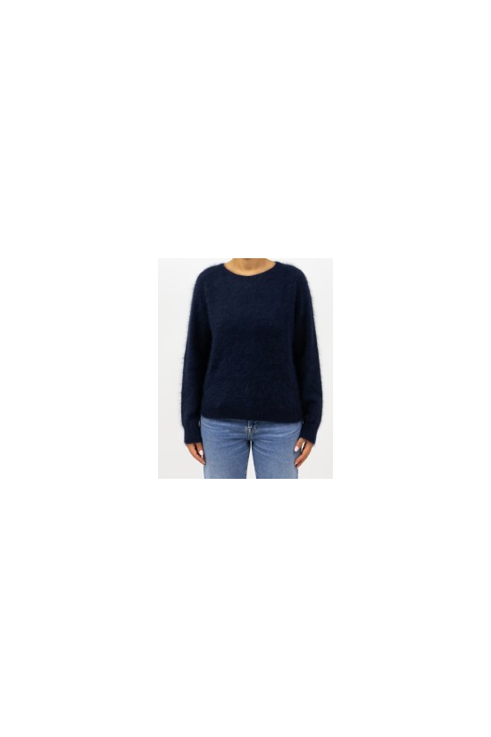 Maglia girocollo con manica lunga realizzata in morbida lana di angora dall'effetto peloso. Rifinita da fondi e polsi a costine. Vestibilità mid over. Calda e confortevole, una coccola nelle fredde giornate invernale!