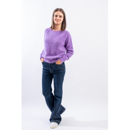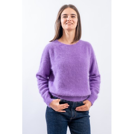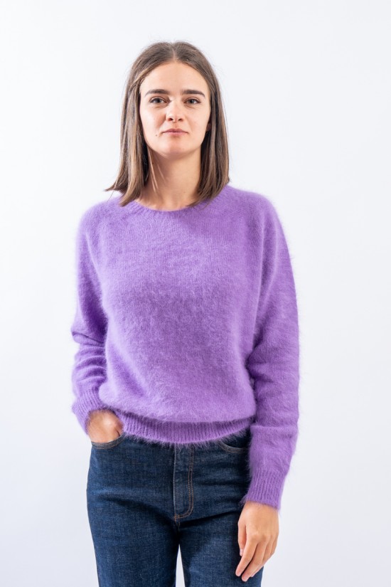 Maglia girocollo con manica lunga realizzata in morbida lana di angora dall'effetto peloso. Rifinita da fondi e polsi a costine. Vestibilità mid over. Calda e confortevole, una coccola nelle fredde giornate invernale!