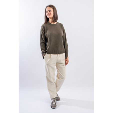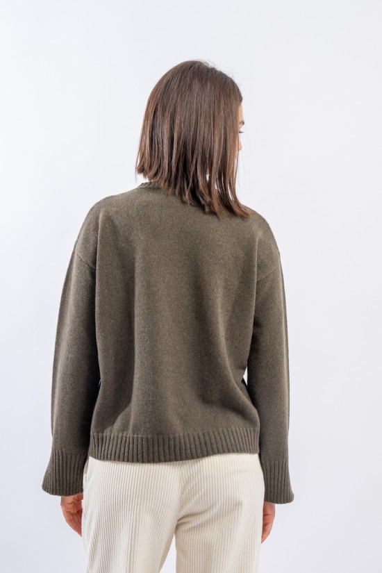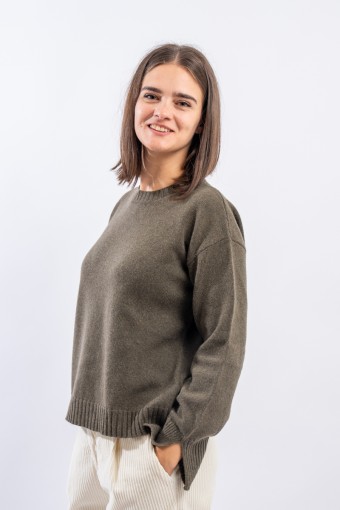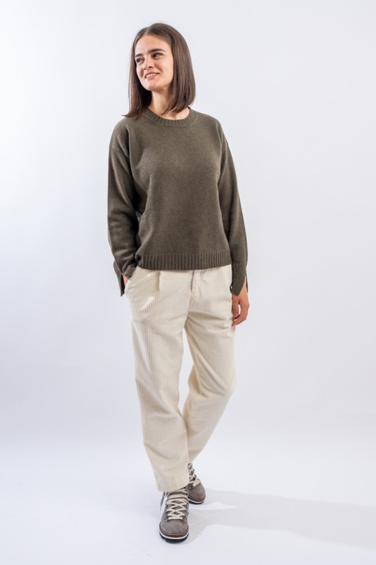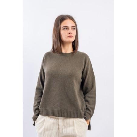 Maglia girocollo realizzata in un pregiato filato di lana e cashemere Made in Italy. Presenta collo, polsi e fondo lavorati a costine. La vestibilità è regolare con taglio sul fondo.