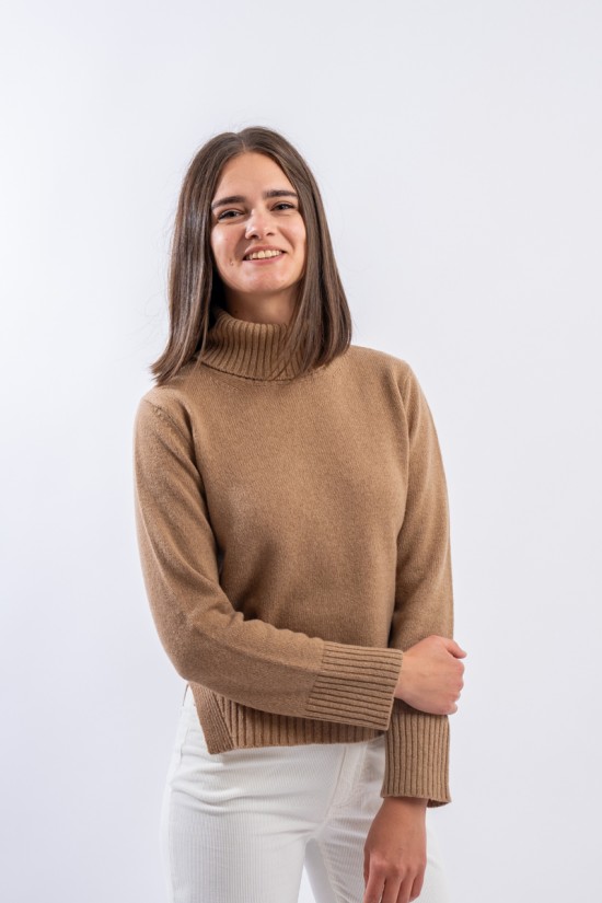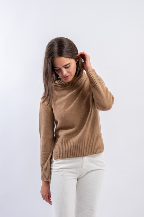 Maglia dolcevita realizzata in un pregiato filato di lana e cashemere Made in Italy. Il fondo calato è un particolare che rivela qualità e accuratezza con cui vengono realizzati i capi Kangra. La tecnica della calatura infatti permette di creare forme e dettagli senza tagliare il tessuto ottenedndo così una migliore vestibilità e linee più armoniose.