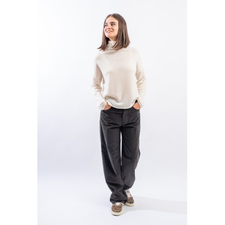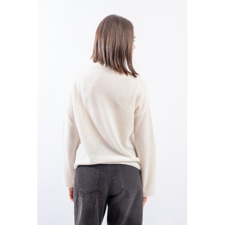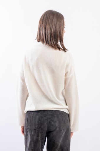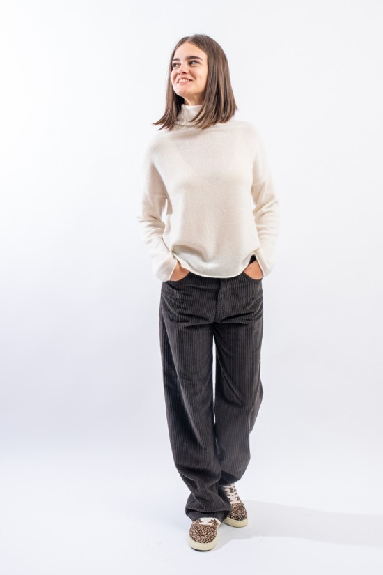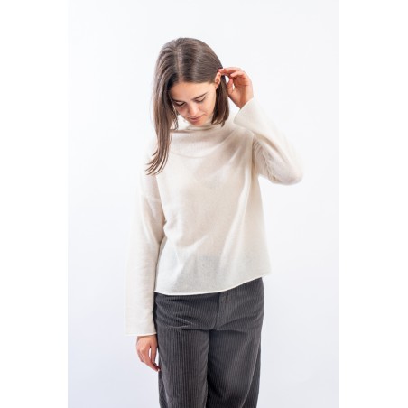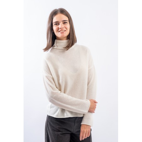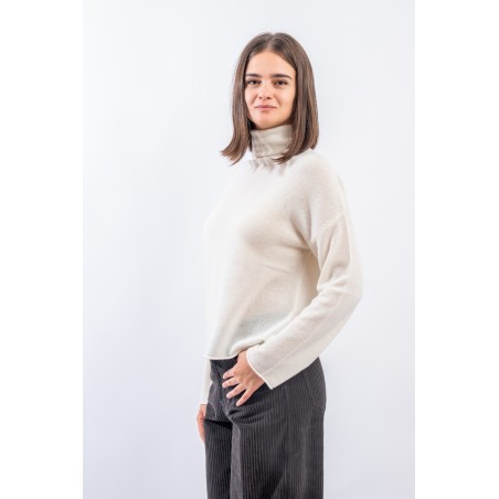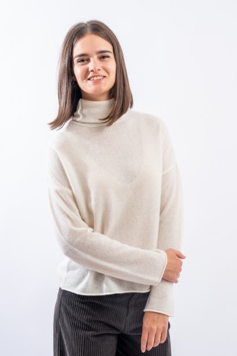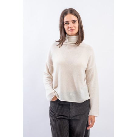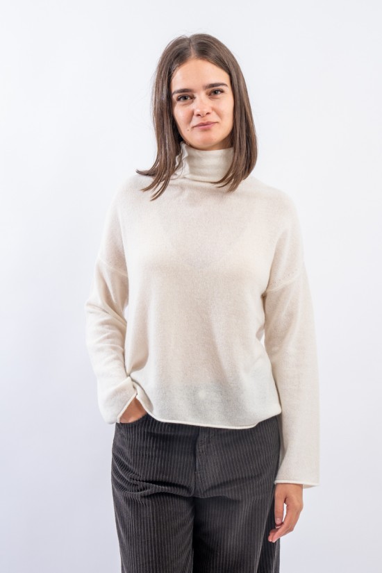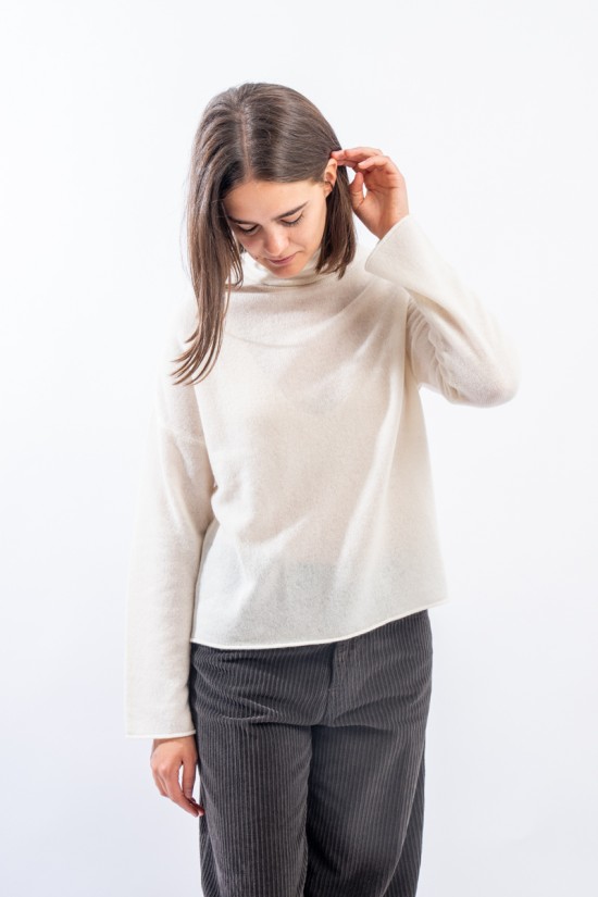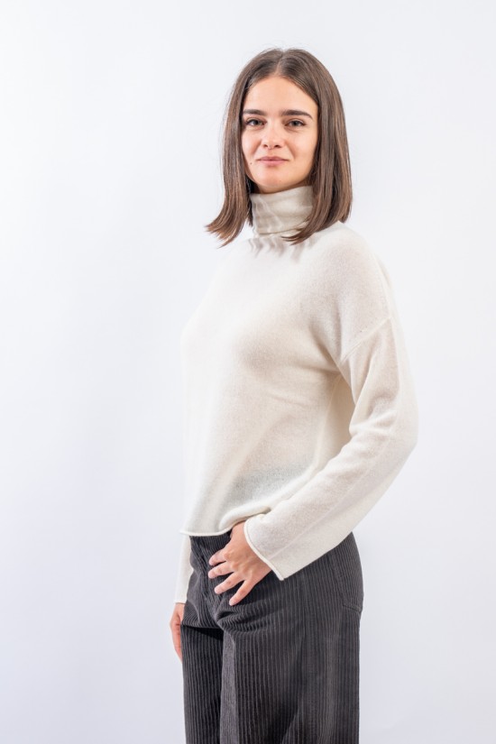 Maglia dolcevita realizzata in un pregiato filato di puro cashmere. La lavorazione rasata sgradata esalta la leggerezza e morbidezza del filato. La linea essenziale è impreziosita dalle rifiniture a crudo. Made in Italy.