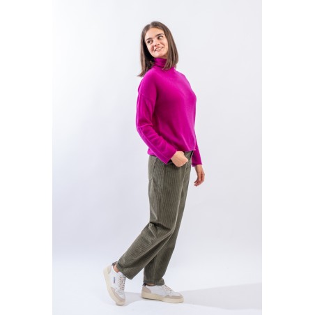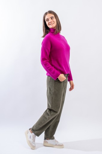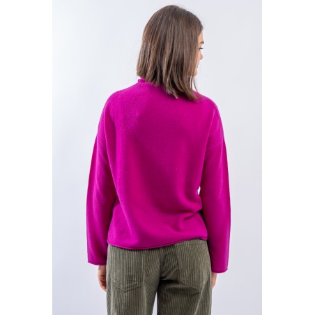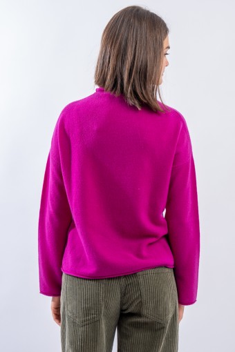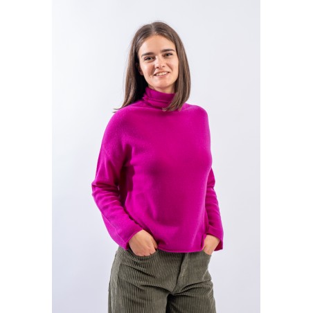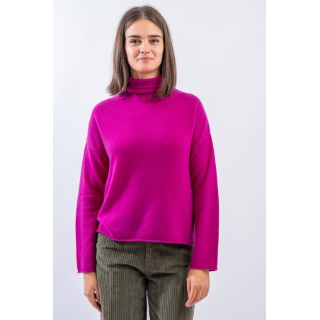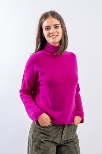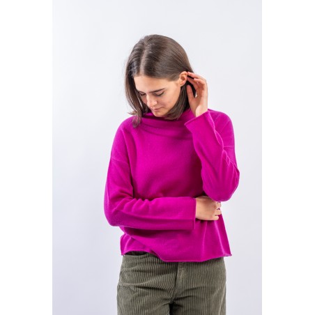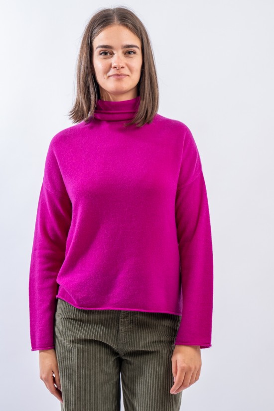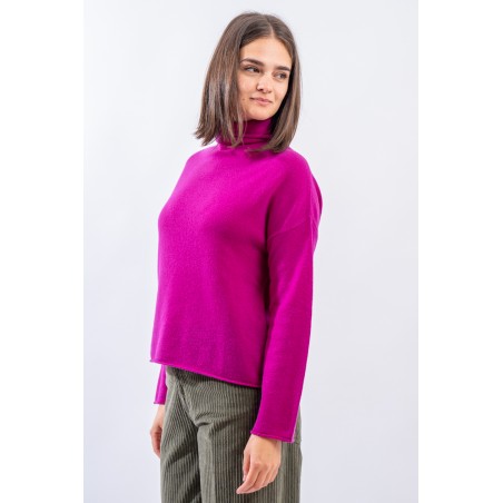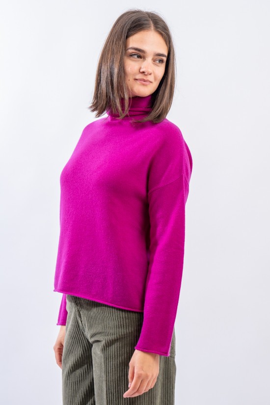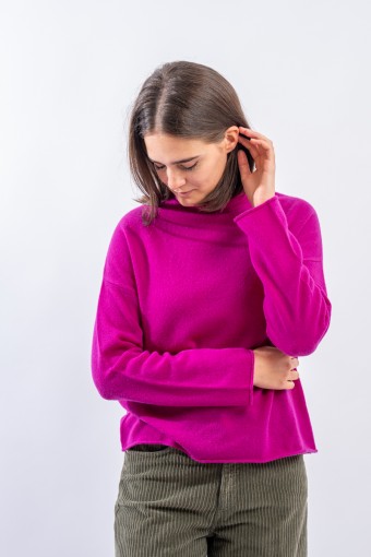 Maglia dolcevita realizzata in un pregiato filato di puro cashmere. La lavorazione rasata sgradata esalta la leggerezza e morbidezza del filato. La linea essenziale è impreziosita dalle rifiniture a crudo. Made in Italy.