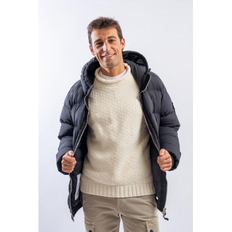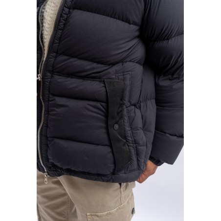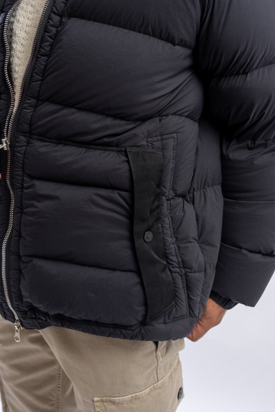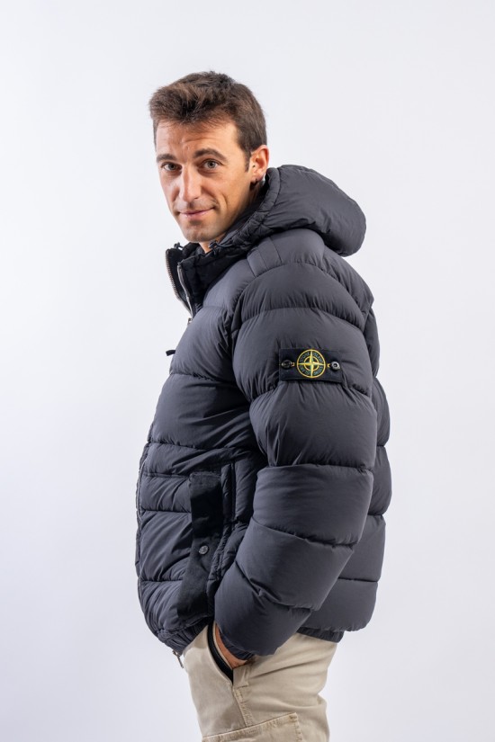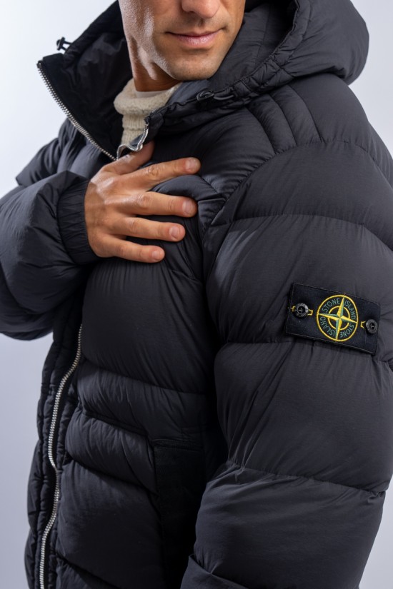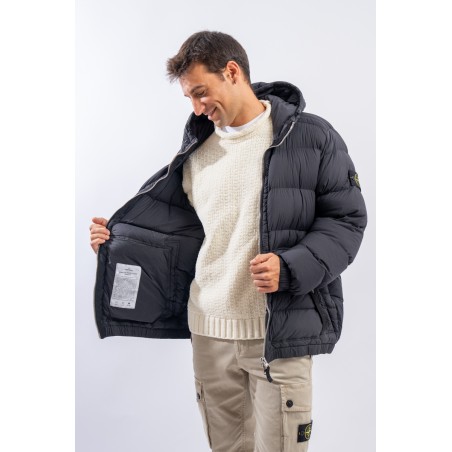 Piumino Stone Island realizzato in un mono strato di nylon stretch leggero. Caldo e comfortevole grazie all'imbottitura con le migliori piume a iniezione diretta che attraverso dei canali senza impunture aumentano la tenuta del piumino e del calore. Le piume, vengono trattate in modo da resistere alla tintura in capo. Presenta cappuccio fisso con coulisse, tasche oblique con pattina rinforzata e bottone e chiusura centrale con zip a due vie. Iconico badge Stone Island sulla manica sinistra.
