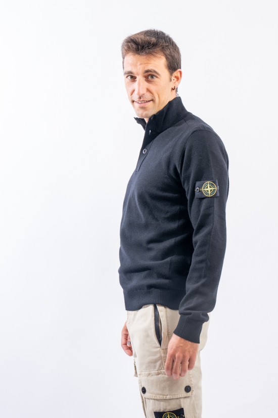 Rivisitazione della maglia Iconica in lambswool con bottoni e zip. Arricchita con inserto in feltro e bottoni logati. Collo, fondo e polsini a costine. Intarsio sul giromanica per un fit ottimale. Must have!