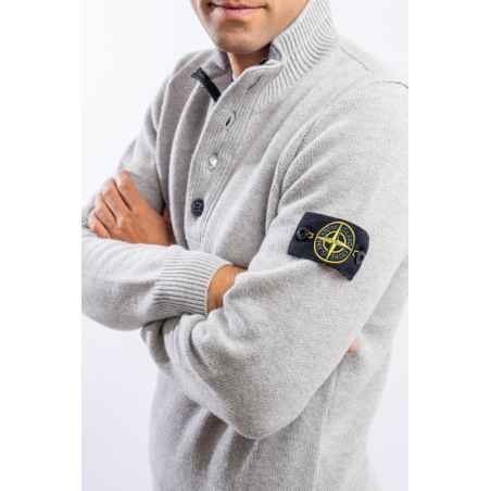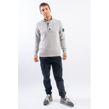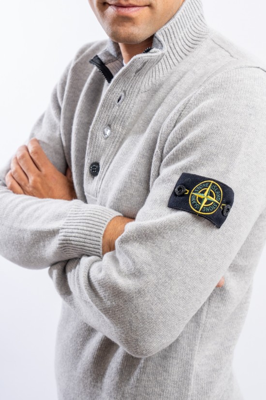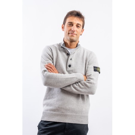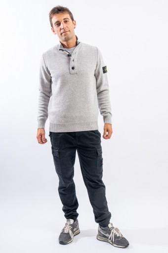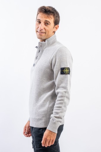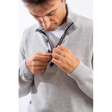 Rivisitazione della maglia Iconica in lambswool con bottoni e zip. Arricchita con inserto in feltro e bottoni logati. Collo, fondo e polsini a costine. Intarsio sul giromanica per un fit ottimale. Must have!
