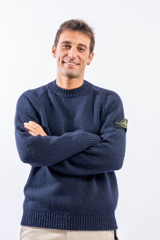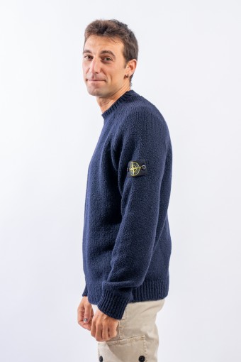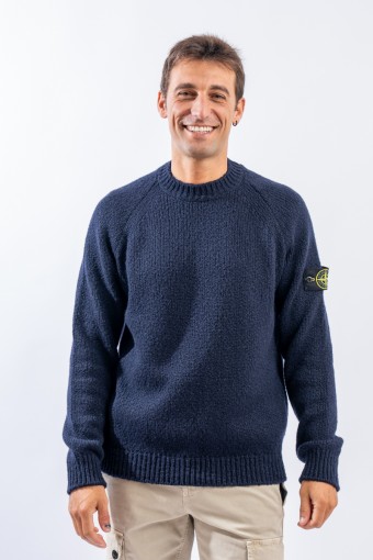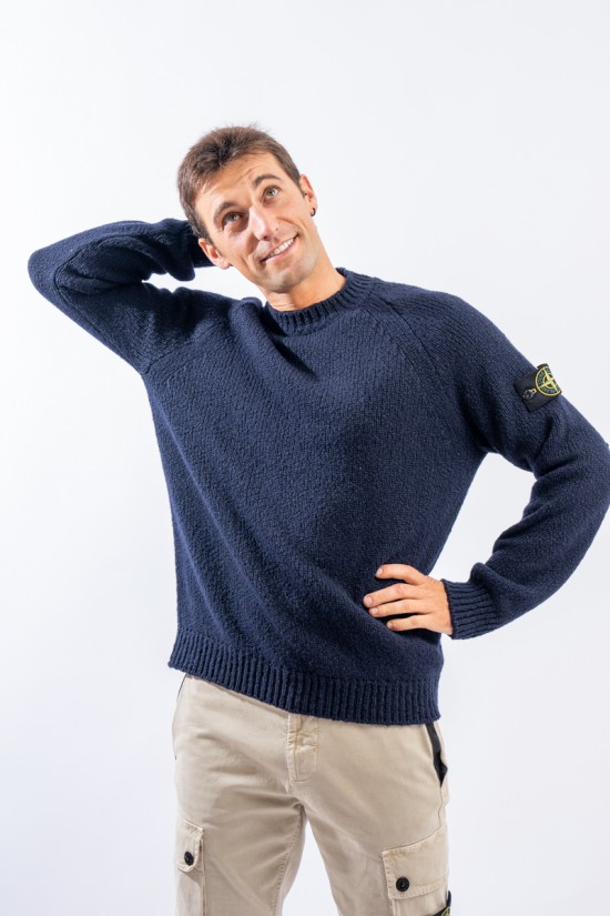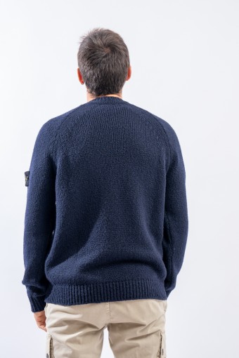 Originale maglione girocollo in morbida lana mouliné. Maniche con bordi e fondo a castine. Finezza 3.