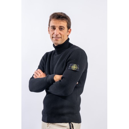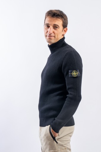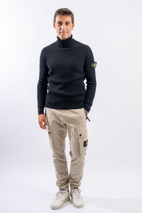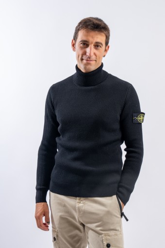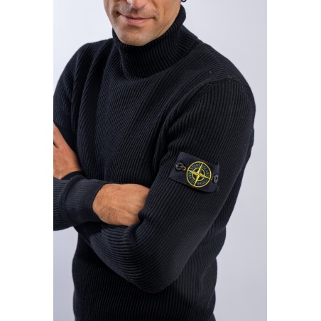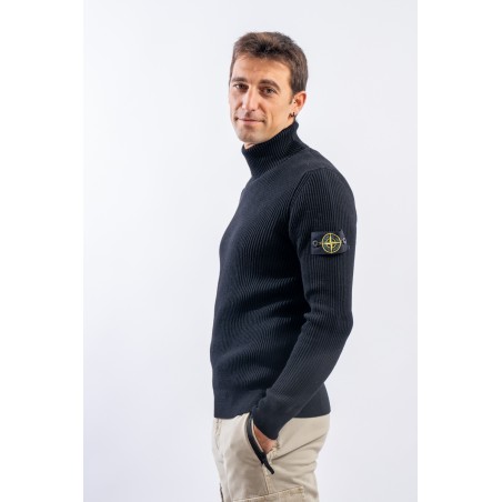 Raffinata maglia a collo alto Stone Island realizzata in 100% lana vergine con lavorazione a costa inglese. Impreziosita sopra i polsini da motivi lavorati a fascia orizzontale. Polsini e fondo lavorate a costine più sottili. Immancabile badge distintivo Stone Island applicato sulla manica sinistra.