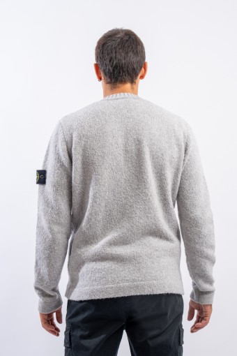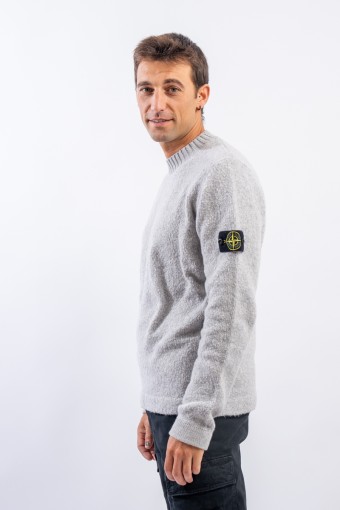 Morbida maglia girocollo in misto lana con effetto garzato, molto piacevole al tatto dalla mano setosa. Fascia laterale a costine. Finezza 5.