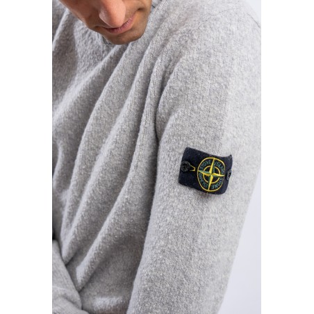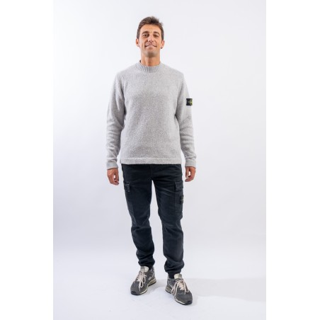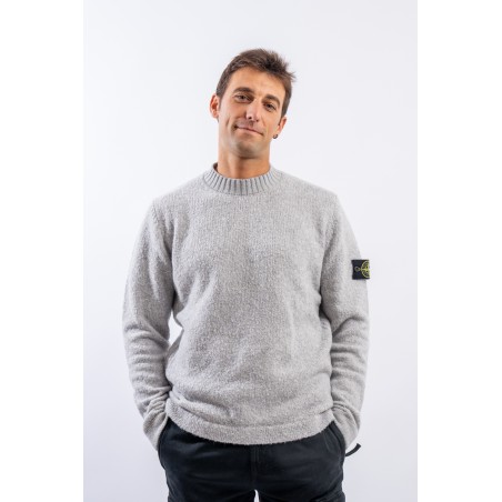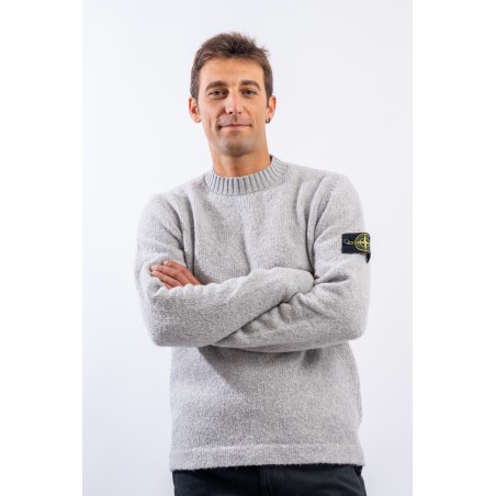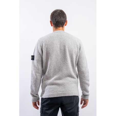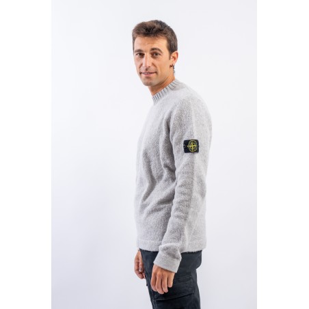 Morbida maglia girocollo in misto lana con effetto garzato, molto piacevole al tatto dalla mano setosa. Fascia laterale a costine. Finezza 5.