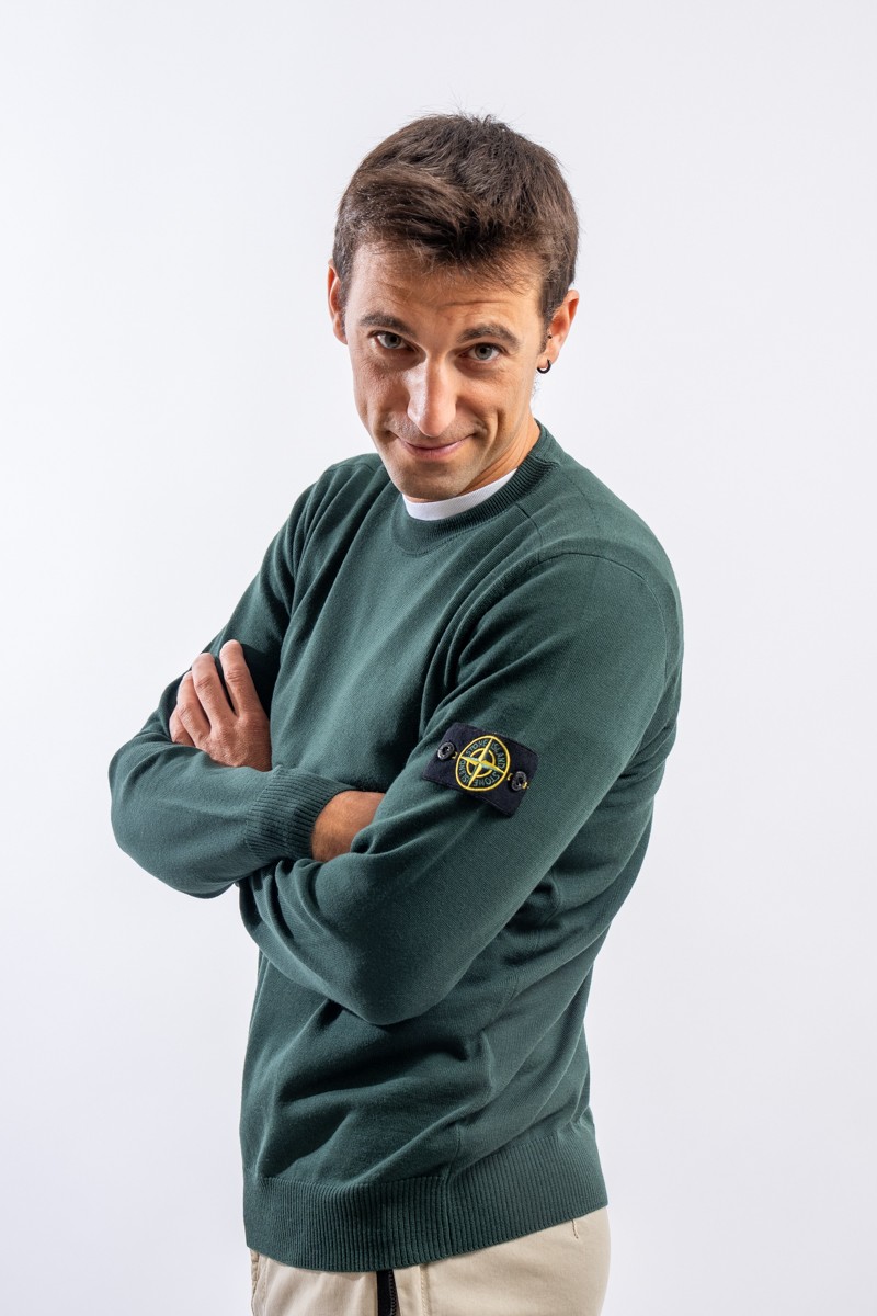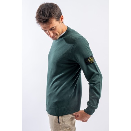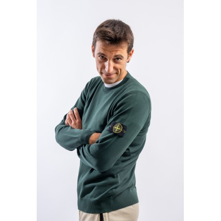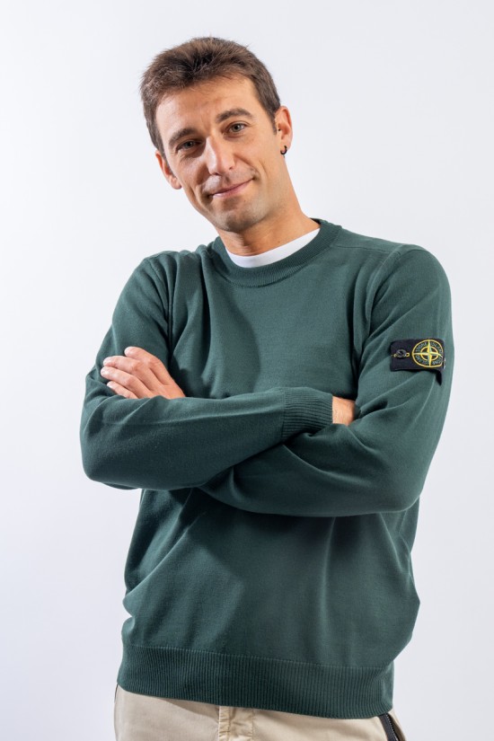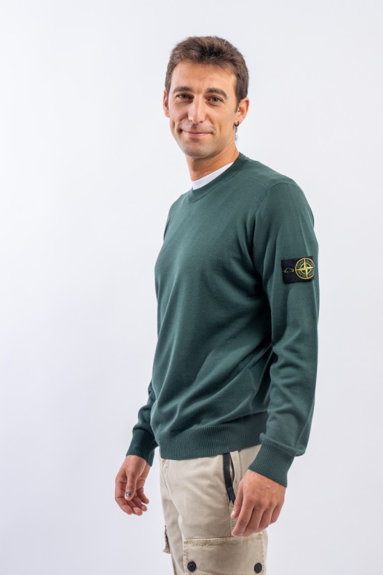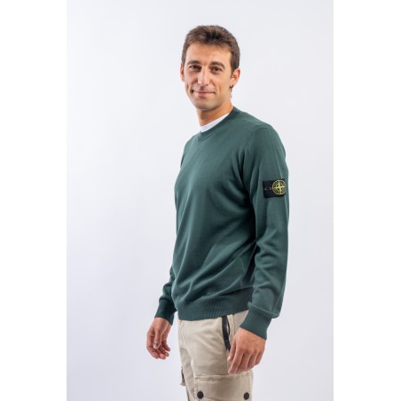 Maglia girocollo in lana rasata interpreta uno stile classico per un capo intramontabile must have per ogni stagione. Scollo, polsini e fondo sono rifiniti con costine. Badge logo Stone Island sulla manica sinistra che completa il capo.