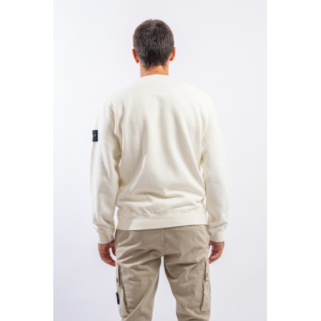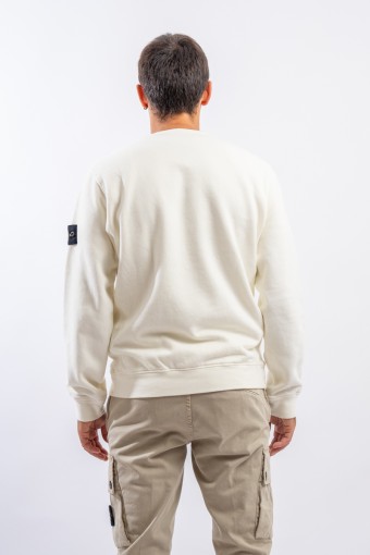 Iconica felpa girocollo in cotone bio reinterpretata con canoni di vestibilità aggiornati. Gradevole al tatto è ipreziosita da inserti garzati. La particolare tintura rende i colori caldi e donanti. Immancabile badge sulla manica sinistra.