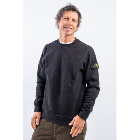 Felpa girocollo realizzata in jersey di cotone 100%. Scollo, fondo e polsini arricchiti da una lavorazione a costine elasticizzate. Vestibilità regular.