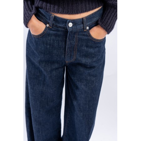 Il modello Gea di Nine in the Morning è un denim overcarrot, gamba lunga e morbida. Presentato nel lavaggio dark blue con cuciture a contrasto è perfetto per la stagione fredda! Vestibilità regolare.