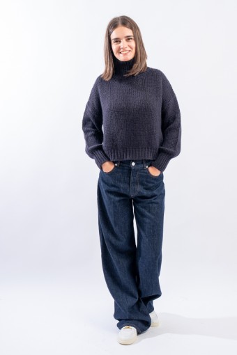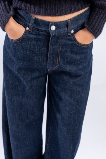 Il modello Gea di Nine in the Morning è un denim overcarrot, gamba lunga e morbida. Presentato nel lavaggio dark blue con cuciture a contrasto è perfetto per la stagione fredda! Vestibilità regolare.