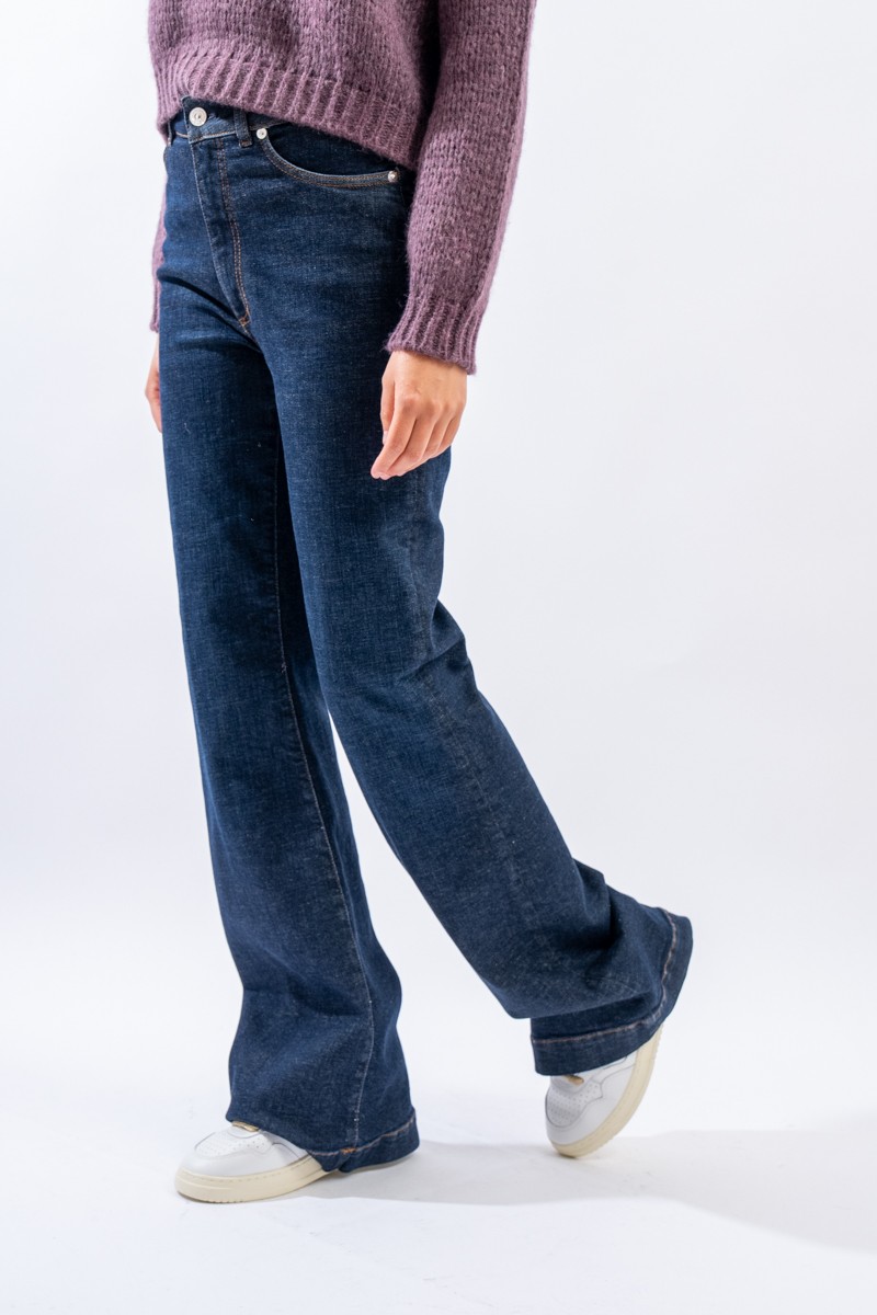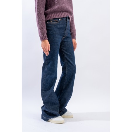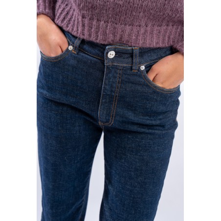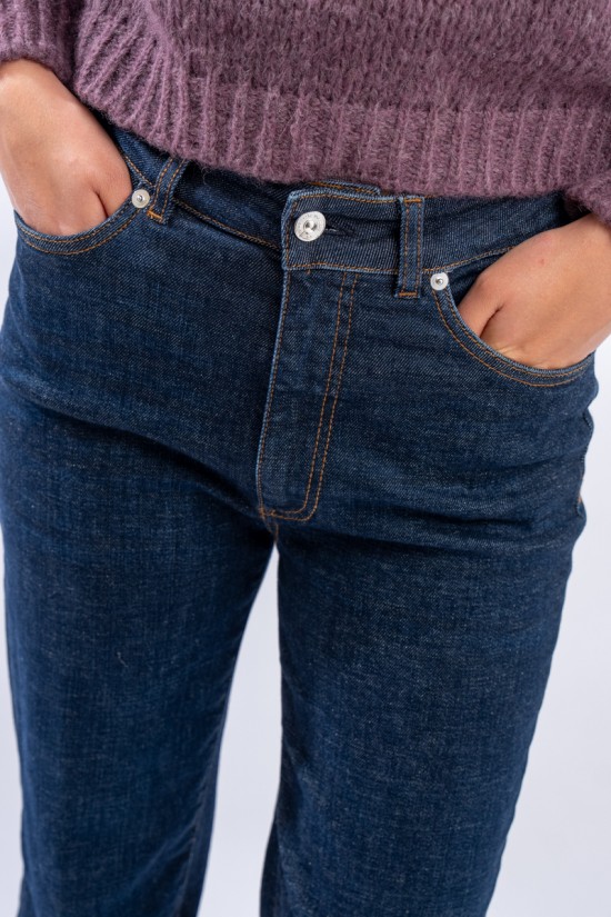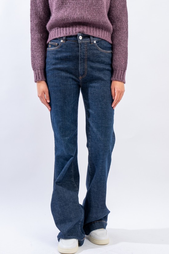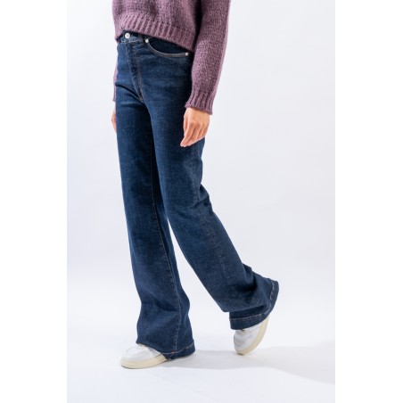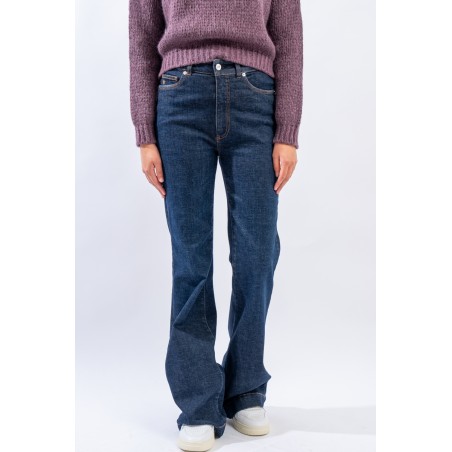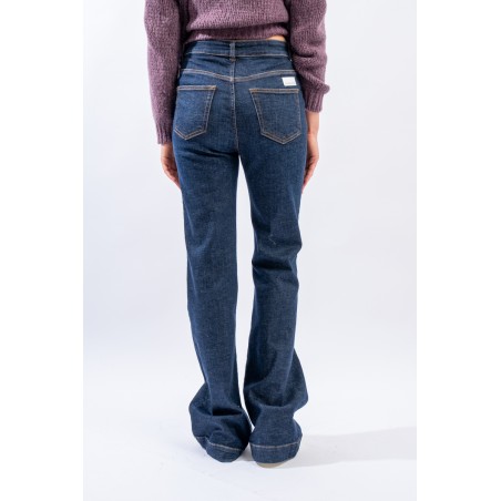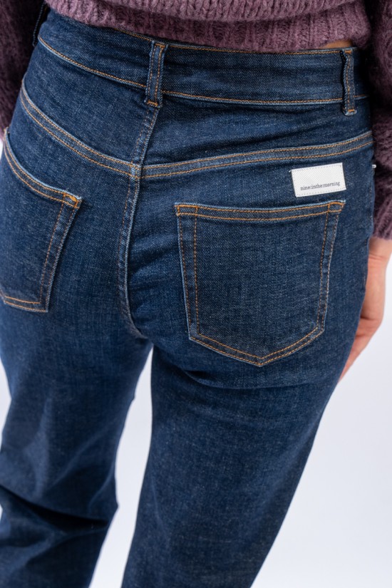 Il modello Paolie di Nine In The Morning è un denim lungo a zampa. 5 tasche e vita alta con gamba asciutta proposto in un lavaggio scuro con cuciture a contrasto. Vestibilità perfetta e linea essenziale per esaltare la silhouette di ogni donna!