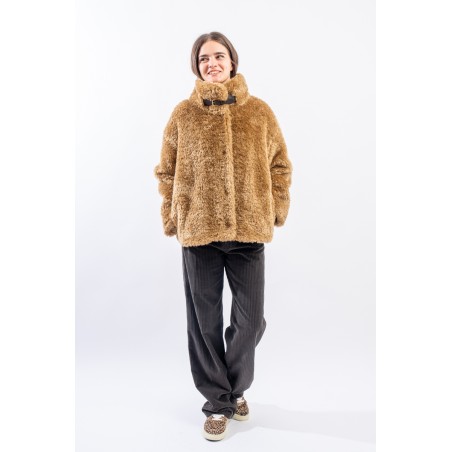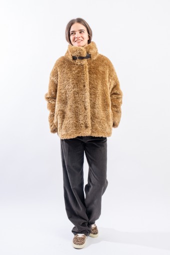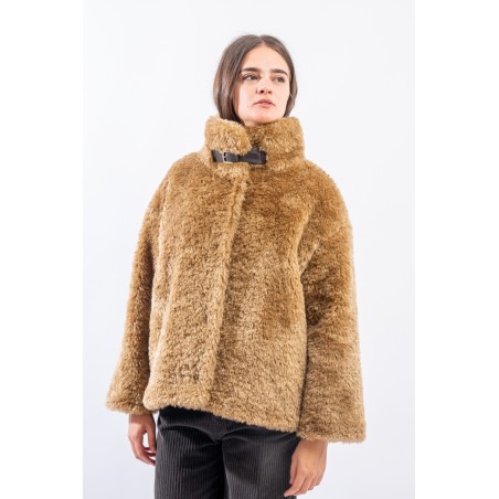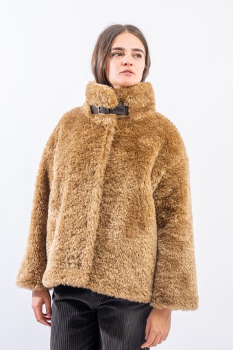 Cappa corta realizzata in soft faux fur. Collo a cratere e chiusura con fibbia in eco pelle. Chiusura con bottoni automatici nascosti e tasche laterali. Fodera interna con monogram Herno tono su tono. Vestibilità regolare. Una nuova interpretazione del cappotto tradizionale proposto in un materiale ricercato e di tendenza!