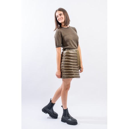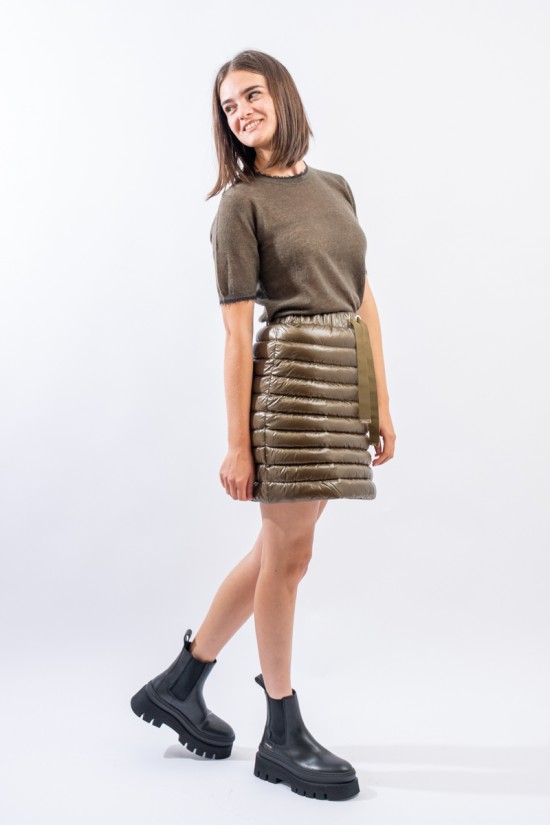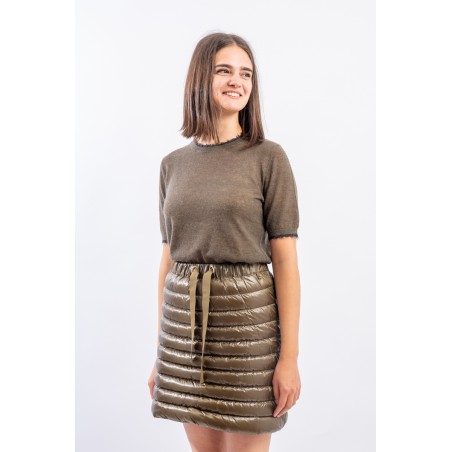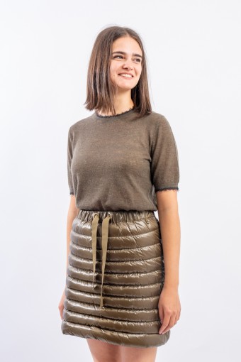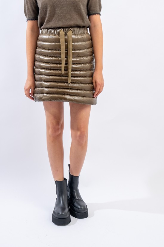 Gonna realizzata in nylon ultralight con design trapuntato. Punto vita elastico con coulisse regolabile in gros grain.