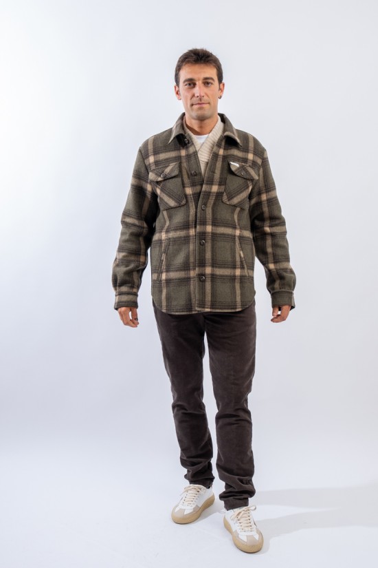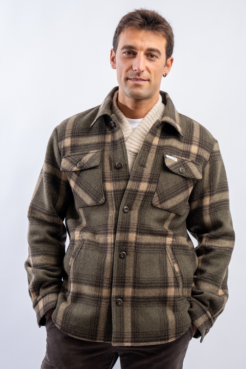 Overshirt ARCHIVE in panno stampa check. Chiusura con bottoni logati e doppio taschino applicato sul petto. Collo e polsini a camicia. Logo FAY ARCHIVE 021 applicato sul taschino.