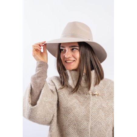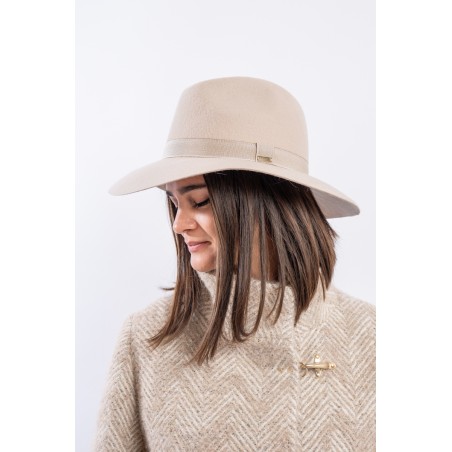 Cappello a tesa larga realizzato in feltro di pura lana. Impreziosito dalla banda in gros grain e dalla placchetta in metallo con logo Fay. Un'accessorio irrinunciabile per aggiungere un tocco di stile ad un outfit ricercato.