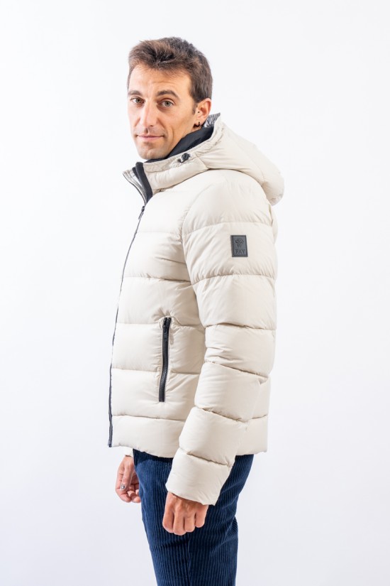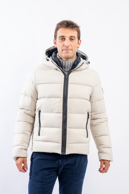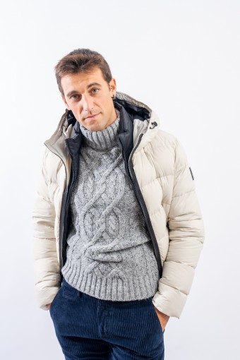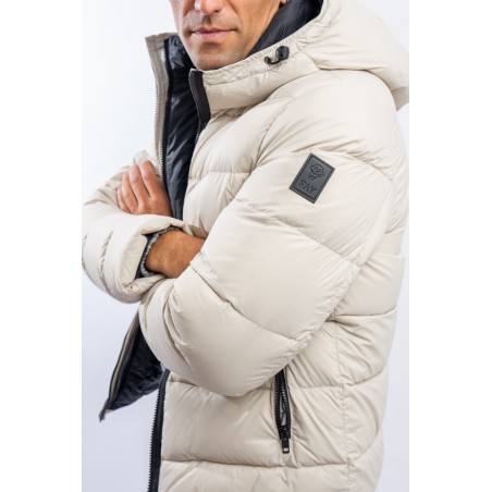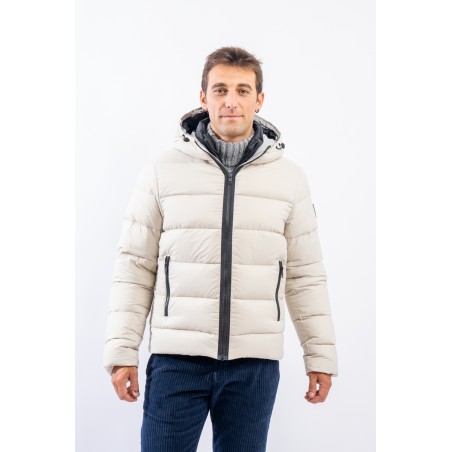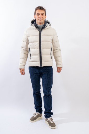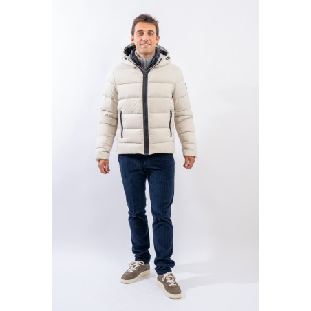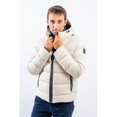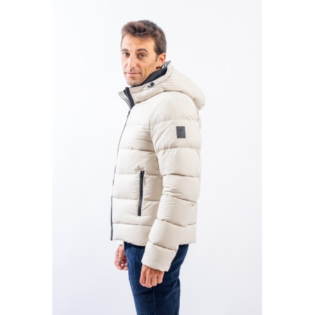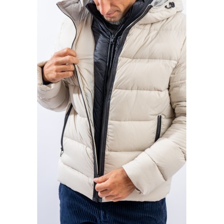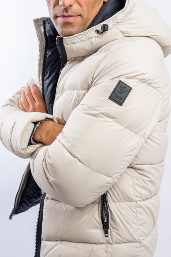 Il nuovo piumino Fay è la rivisitazione dell'iconico modello double front. Realizzato in nylon idrorepellente con morbida e calda imbottitura in pregiata piuma. Presenta cappuccio fisso regolabile da coulisse, chiusura centarle con zip a doppia via e due tasche verticali chiuse da zip. Impreziosito dalla pettorina interna con collo in piedi per garantire maggior protezione e calore. Logo Fay cucito sulla manica.