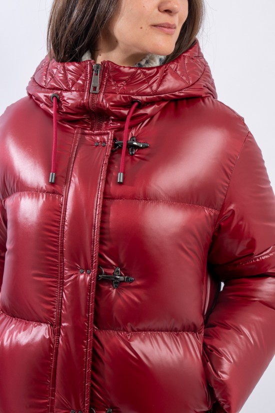 Il piumino Fay ispirato all'iconico 3 ganci, è realizzato in nylon lucido con caratteristiche down proof e water repellent. Il cappuccio è avvolgente e dotato di coulisse regolabile. Chiusura con zip nascosta dalla patta con iconici ganci Fay in metallo. Moderno, morbido e confortevole, è il capo ideale per completare il tuo look urban-chic! Made in Italy.