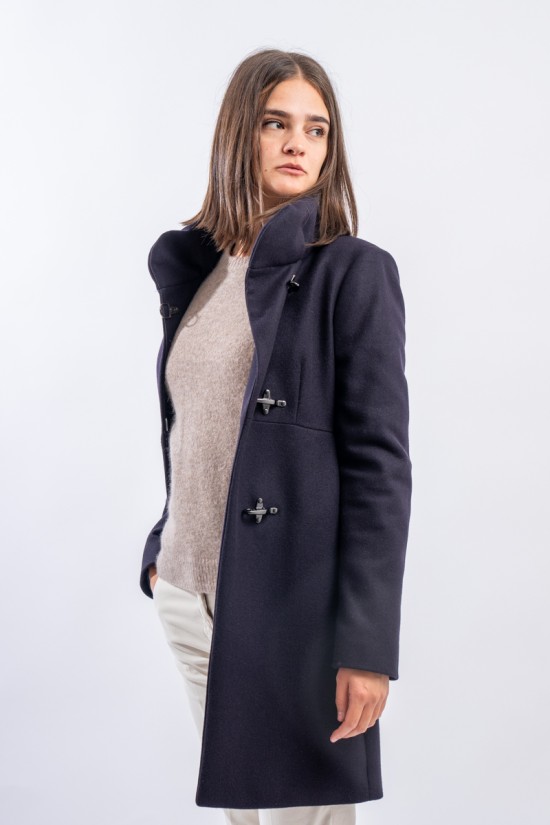 Il cappotto Fay è un classico intramontabile che esprime eleganza e contemporaneità. Caratterizzato da un'elegante linea a tulipano e un design minimal che esalta la silhouette femminile che lo rende versatile e armonioso. Realizzato in morbido panno misto lana con collo avvolgente. La chiusura a tre ganci è l'elemento distintivo del brand e l'etichetta interna porta il nome del capo.