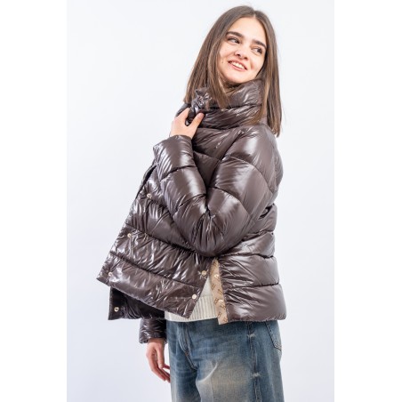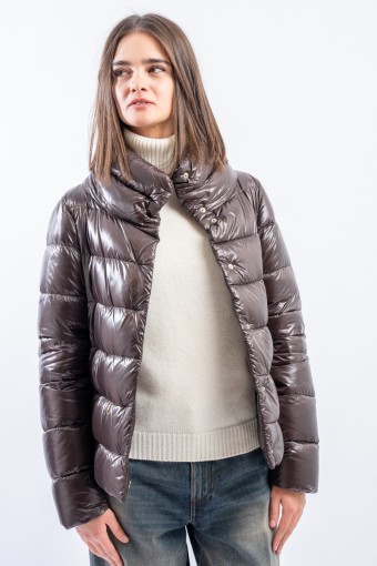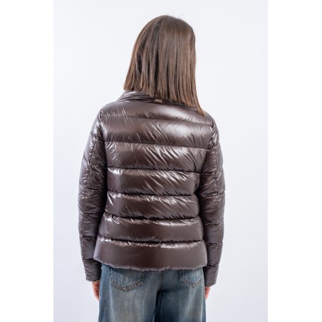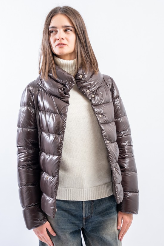 Piumino Herno modello cappa realizzato in nylon ultralight. Imbottitura in leggerissimo piumino d'oca, caldo e confortevole. Collo a cratere, chiusura con bottoni automatici nascosti. Spacchetti laterali con bottoni dorati e inserto monogram all'interno. Vestibilità mid over.