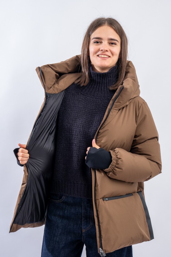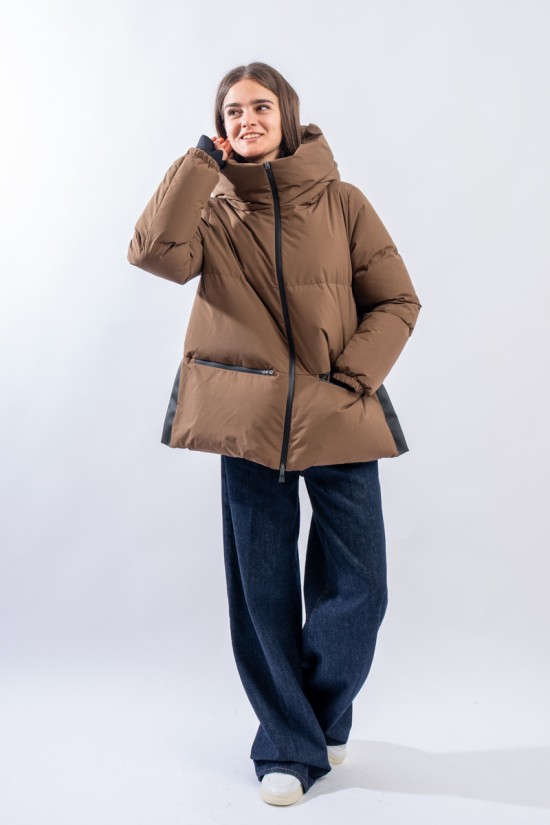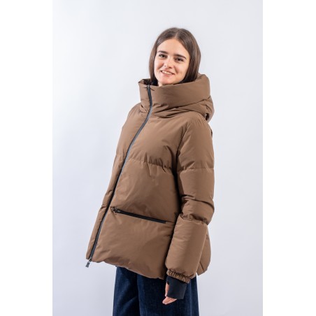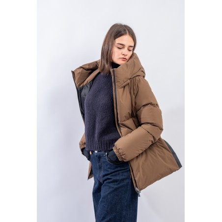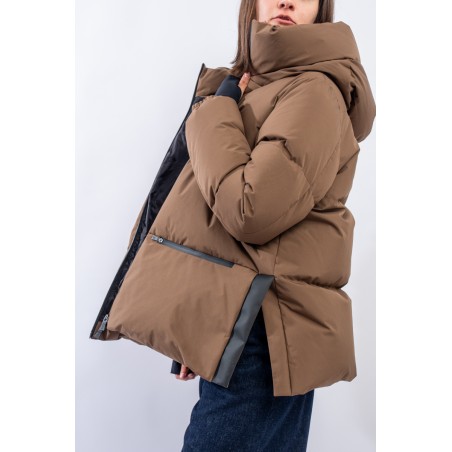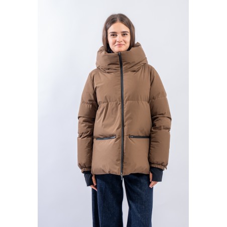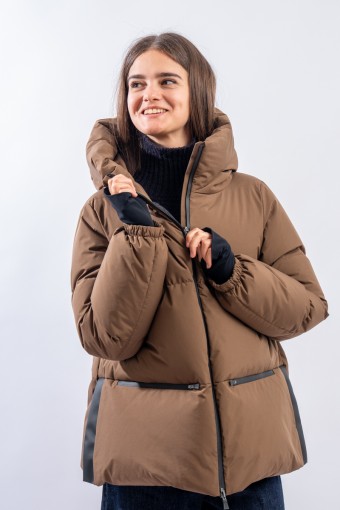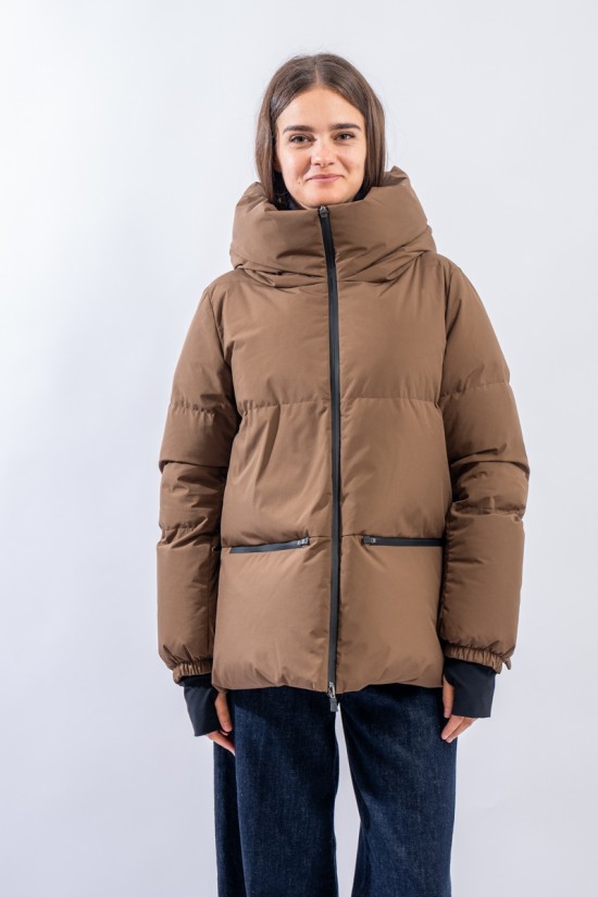 Piumino corto A shape della linea Functional Wardrobe di Herno che trasforma un modello dall'aspetto cittadino in un capo ad alte prestazioni. Realizzato in tessuto tecnico 2 layers risulta impermeabile, anti vento e altamente traspirante. L'imbottitura in piumino d'oca lo rende estremamente caldo e confortevole, garantendo un'ottimo isolamento termico anche per le temperature più rigide. La linea ad A caratteristica dei capi Herno, è enfatizzata dagli spacchi laterali rivestiti con tessuto gommato. Un modello ricercato nei volumi e nei materiali, pensato per essere durevole nel tempo.