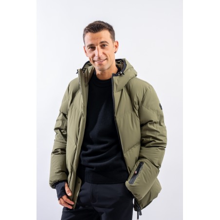 Il piumino corto Angren Moncler della collezione Grenoble unisce stile e performance, ideale per gli appassionati di sci e snowboard. Realizzato in popeline tecnico 2L 4-Way elasticizzato, garantisce massimo comfort, libertà di movimento e protezione dalle intemperie grazie alle cuciture termonastrate. Caratterizzato dall'imbottitura leggera e da  tessuti tecnici di alta qualità. Il cappuccio regolabile, le ghette in jersey elasticizzato e le tasche con zip resistenti offrono praticità e sicurezza. Dotato di coulisse sul fondo, riflettore RECCO® e dettagli premium. Il modello combina tecnologia e design contemporaneo per vivere al massimo ogni avventura sulla neve.