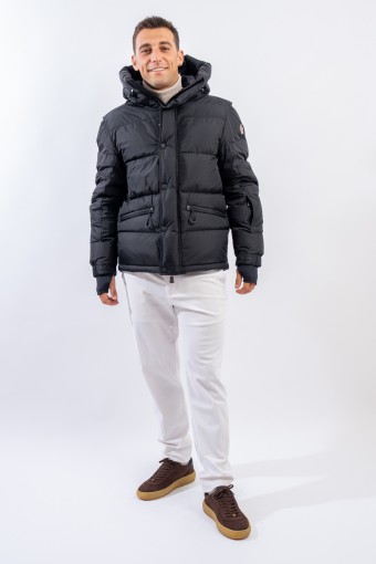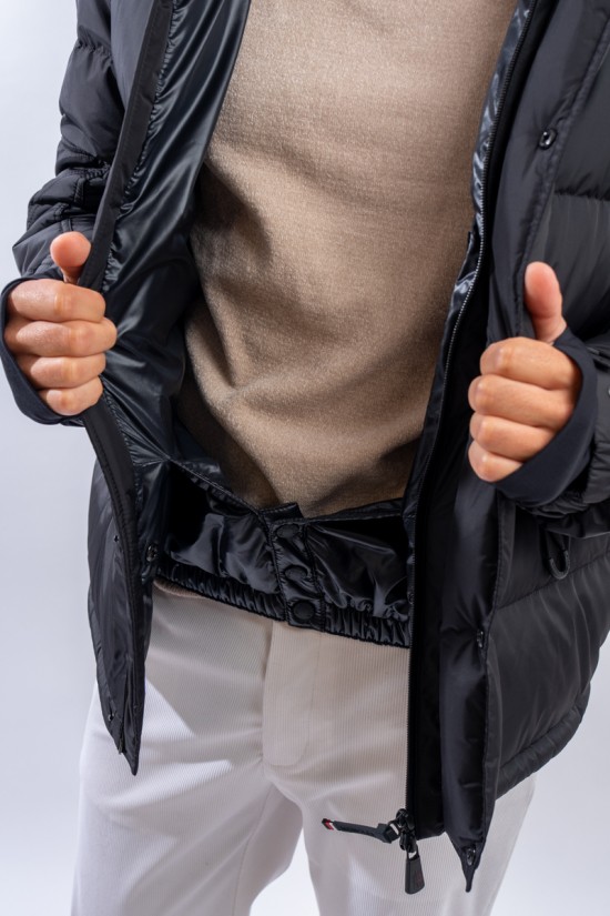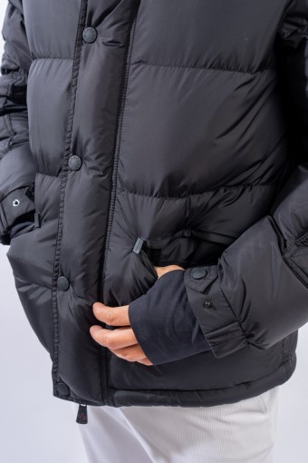 Combina funzionalità e stile il piumino Kasanka della collezione Moncler Grenoble. Realizzato in 2L nylon tecnico con fodera micro ripstop, offre protezione tecnica e leggerezza. E' ideale per le attività outdoor grazie alla sua struttura traspirante. L'imbottitura in piuma garantisce calore, mentre il cappuccio regolabile e le zip idrorepellenti, come quelle YKK® AquaGuard®, assicurano praticità e resistenza alle intemperie. Le tasche multiple, tra cui quella interna per dispositivi e panno occhiali, insieme alla ghetta antivento e ai polsi con ghette in jersey elasticizzato, rendono il capo perfetto per affrontare ogni sfida in montagna.
