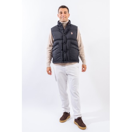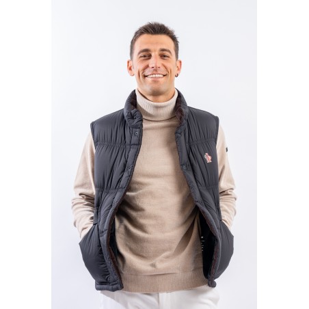 Pensato per il tempo libero in montagna il gilet imbottito Aul, fa parte della collezione Moncler Grenoble. Leggero e caldo, è realizzato in resistente nylon con una fodera in Polartec® High Loft™, un morbido pile che garantisce calore senza appesantire. La sua struttura imbottita e il tessuto ad asciugatura rapida offrono massima libertà di movimento e comfort durante le attività all'aperto. I dettagli eleganti includono il colletto in velluto a coste, una chiusura con bottoni automatici e doppie tasche sul fronte , rendendo questo gilet pratico e stiloso per le avventure in montagna.