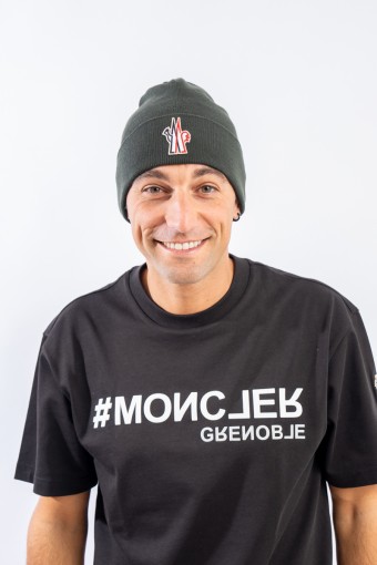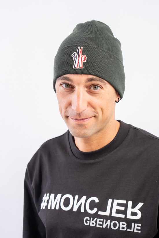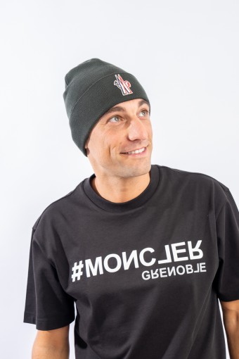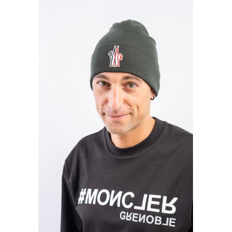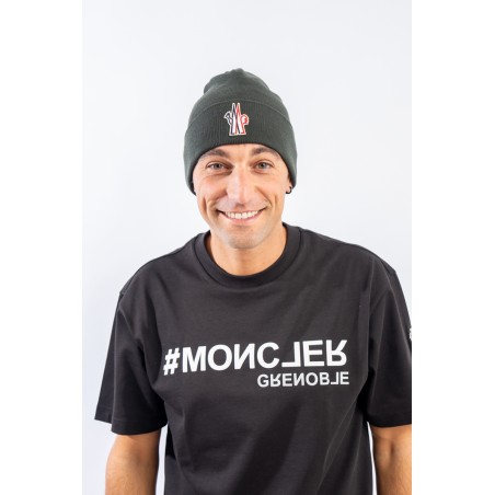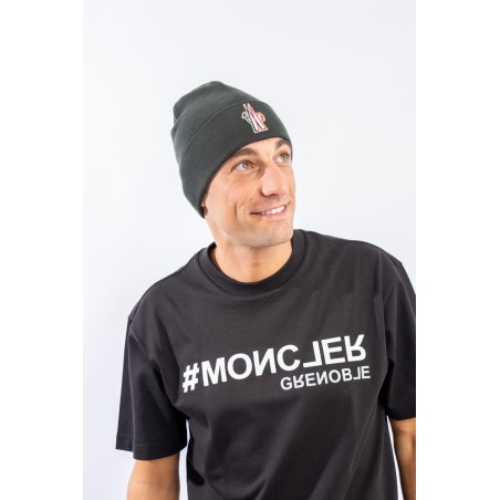 Berretto Moncler con risvolto realizzato in lana. Impreziosito dal logo istituzionale ricamato al centro. Made in Italy.