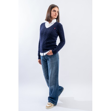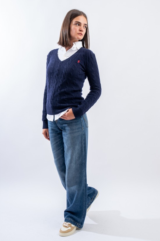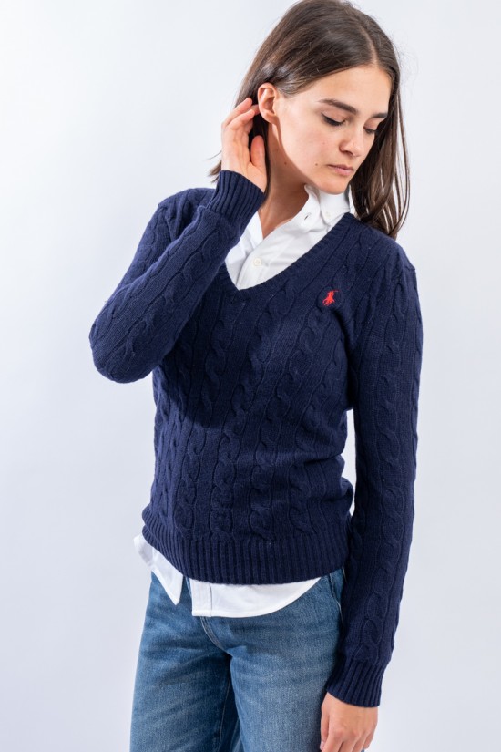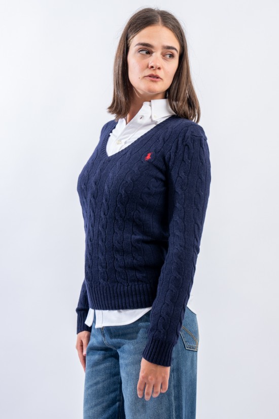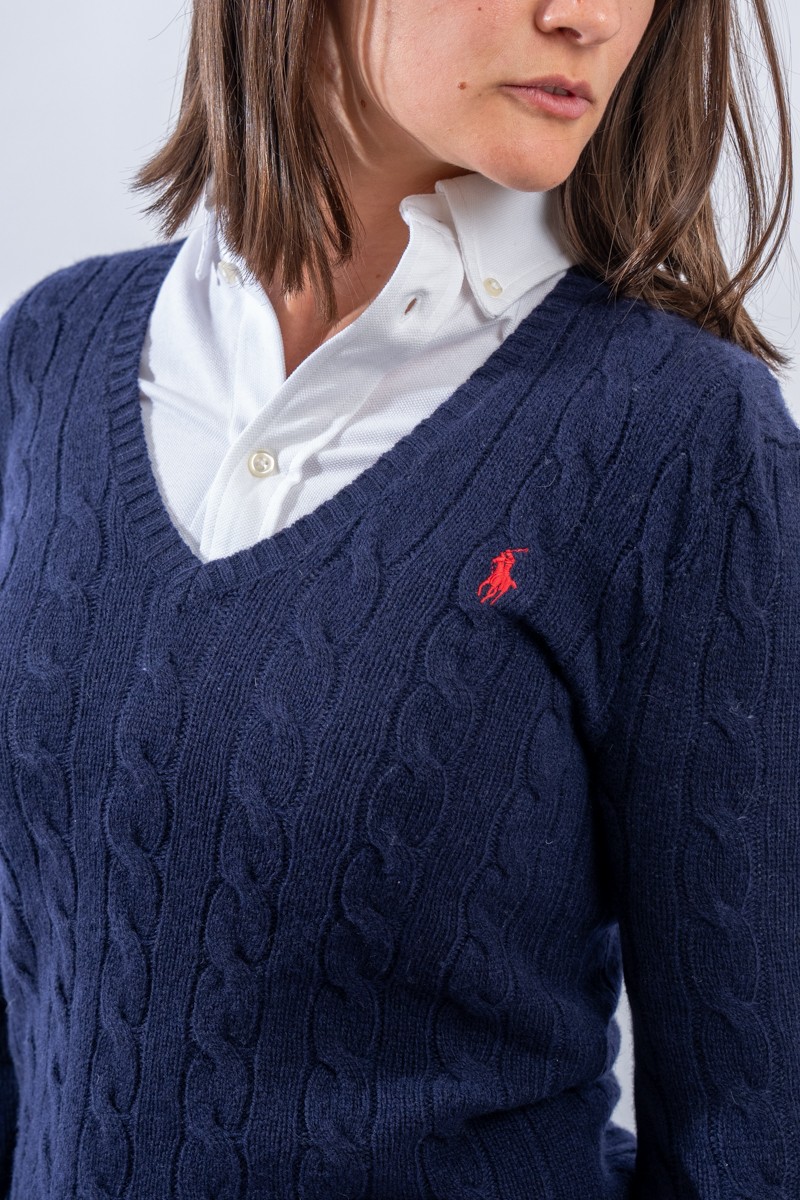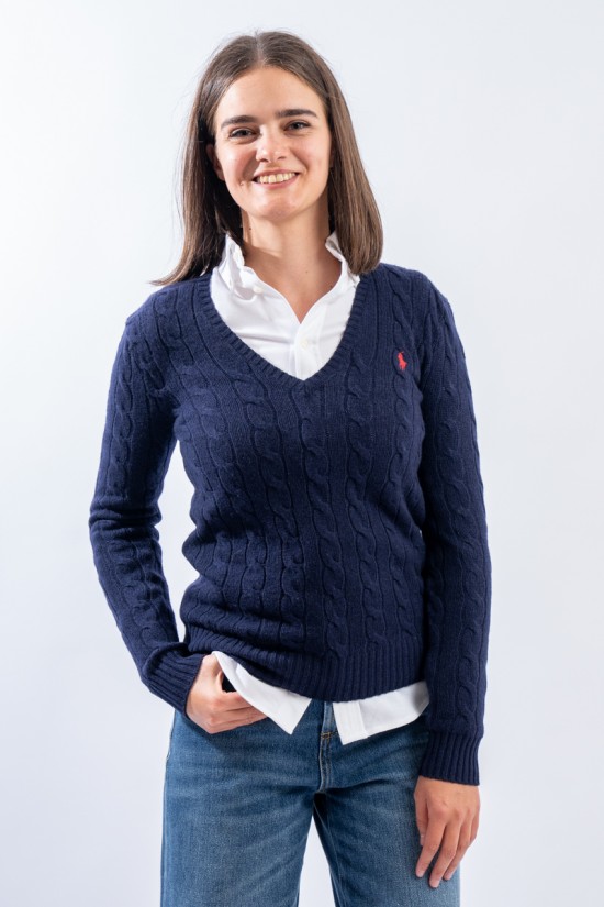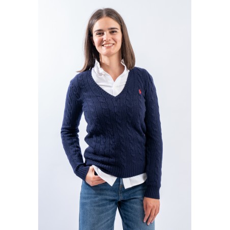 Morbida maglia scollo a V realizzata in un pregiato filato di lana e cashemere. Caratterizzata dalla lavorazione a trecce dal fascino intramontabile. Iconico pony Ralph lauren ricamato sul petto. Vestibilità slim fit. Calda e confortevole, un capo irrinunciabile nella stagione fredda.