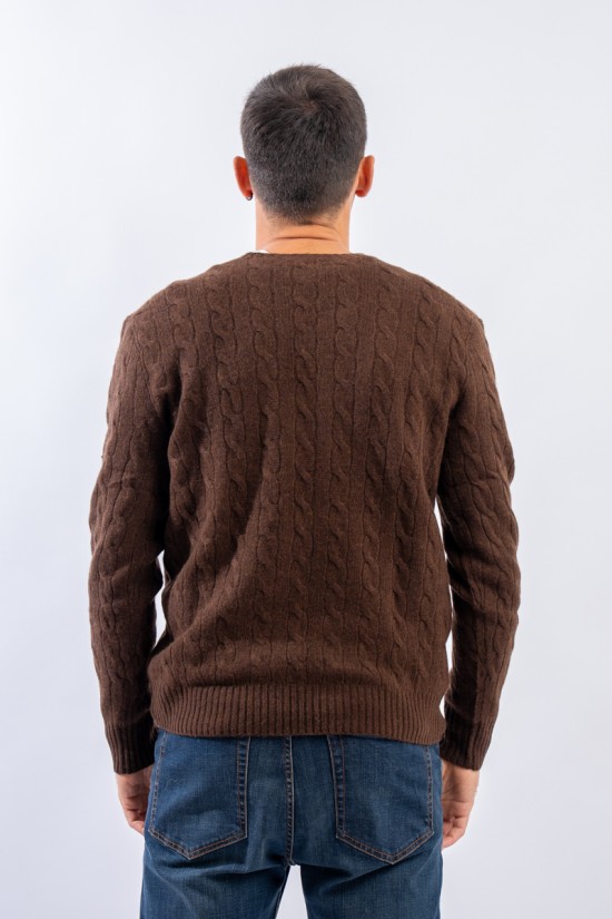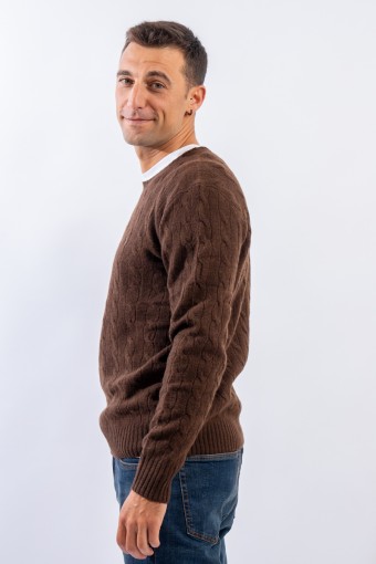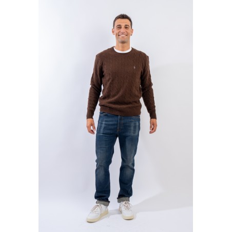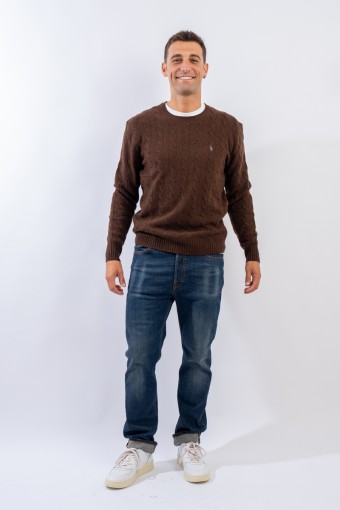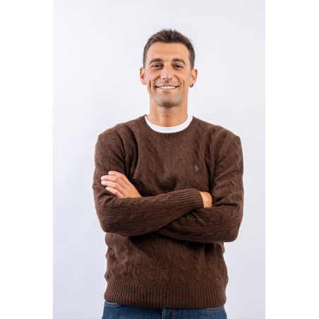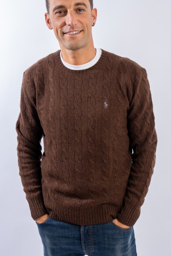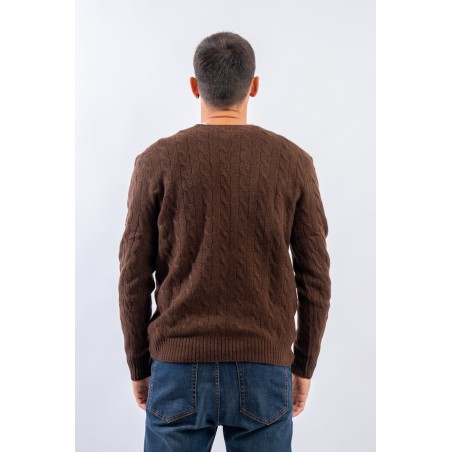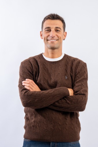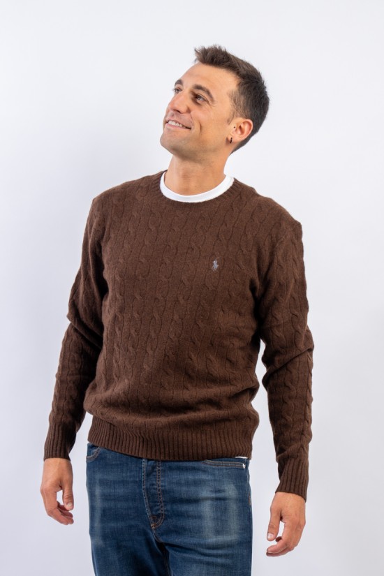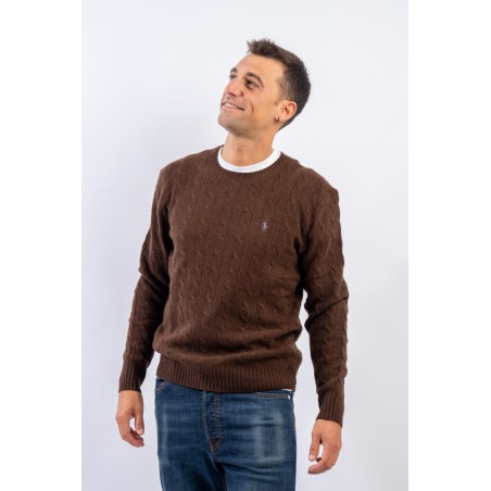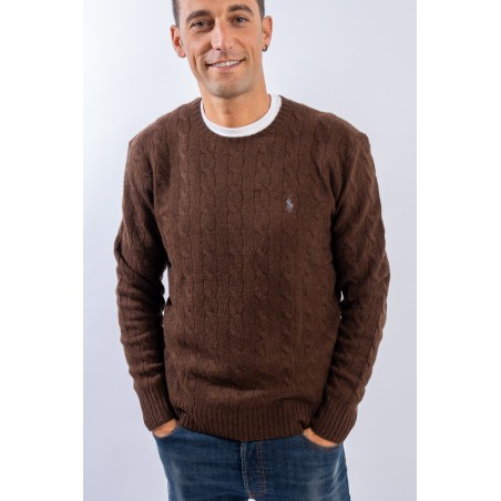 Morbido maglioncino in misto lana e cashmere a tinta unita con raffinata lavorazione a treccia. Impreziosito dall' iconico pony ricamato a rilievo e a contrasto di colore. Capo classico ed intramontabile firmato Polo Ralph Lauren.