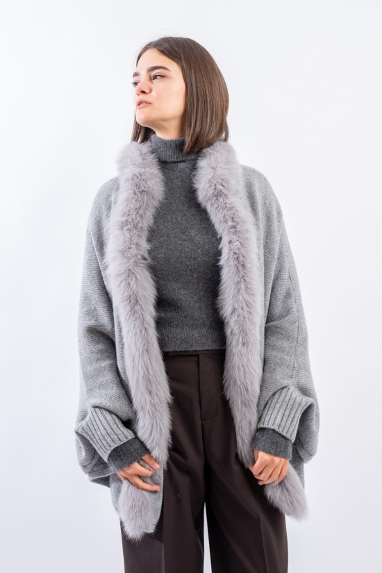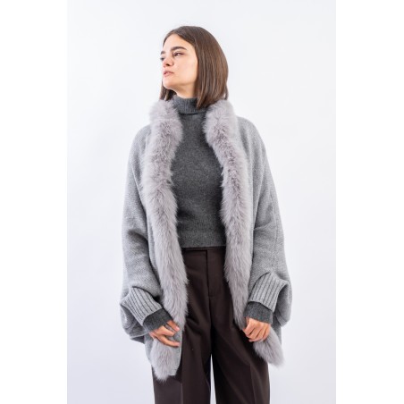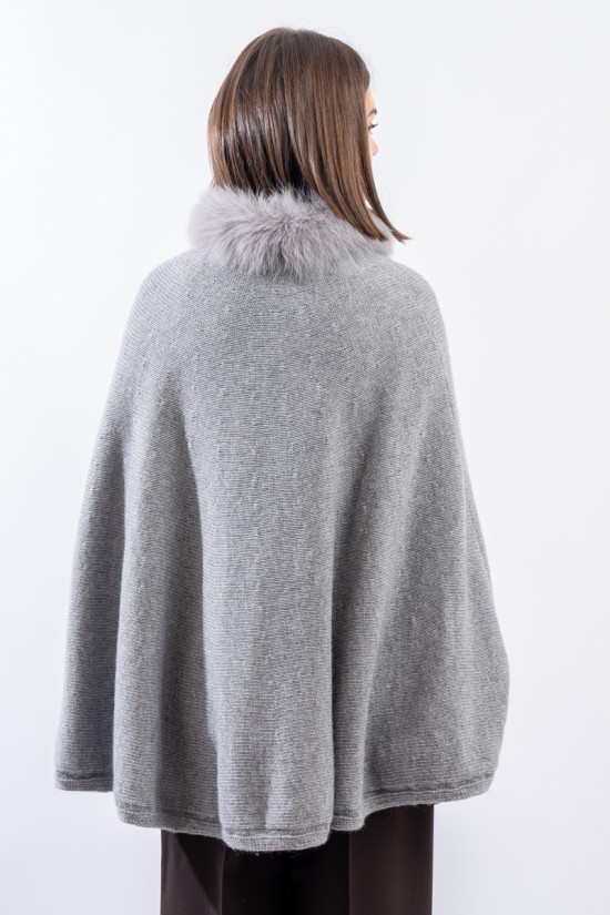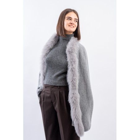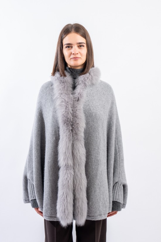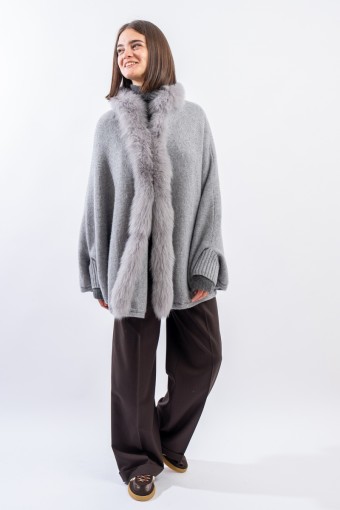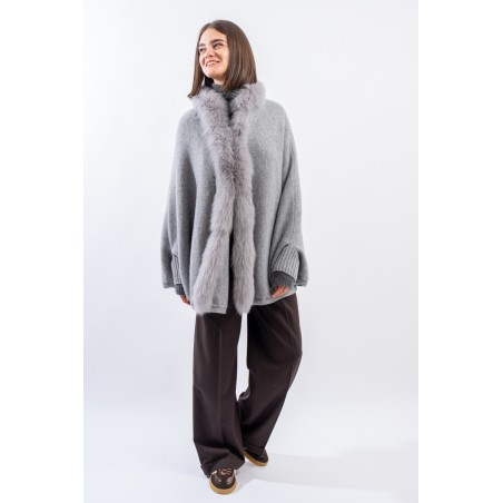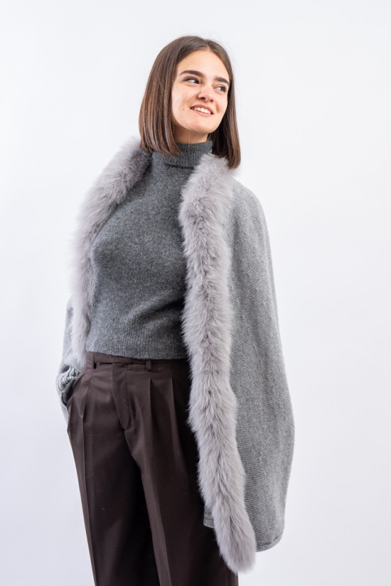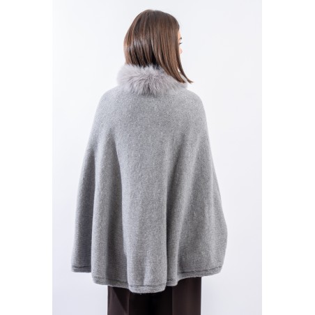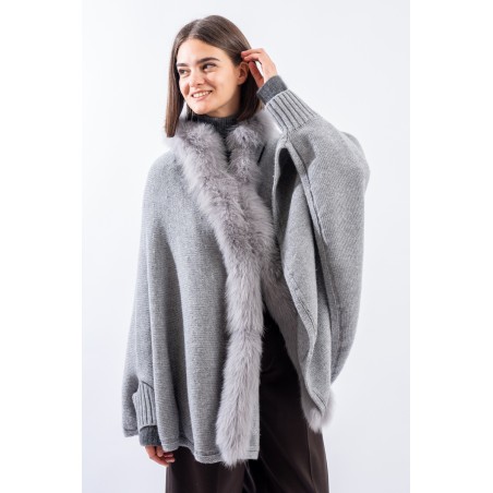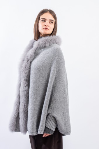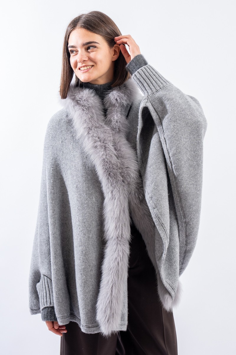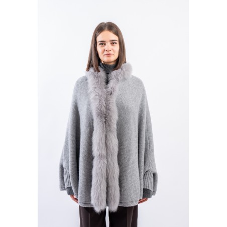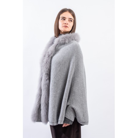 Poncho in maglia realizzato in lana e cashemere. Impreziosito dal profilo in pelliccia di volpe. Polsini rifiniti con lavorazione a costine. Vestibilità comoda con fondo stondato. Chiusura con gancetti a scomparsa. Made in Italy.