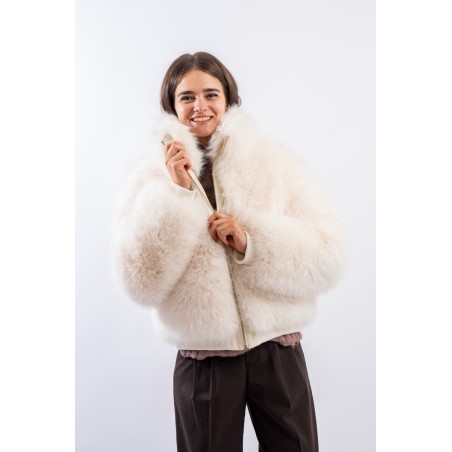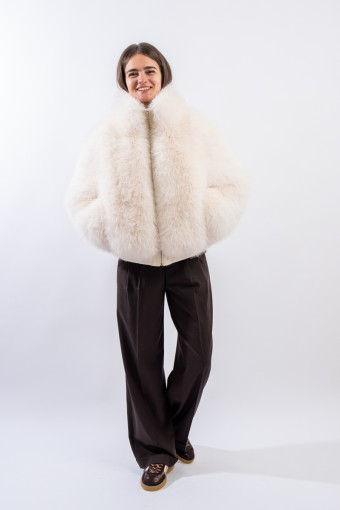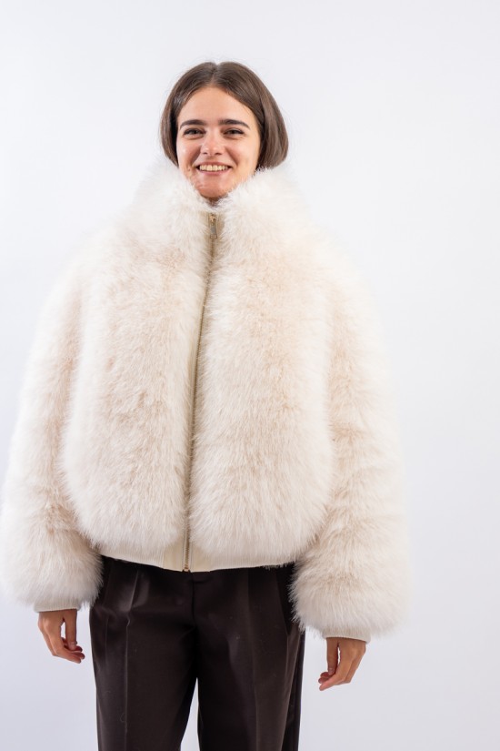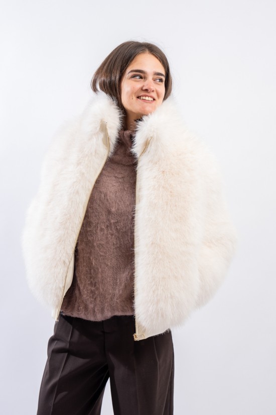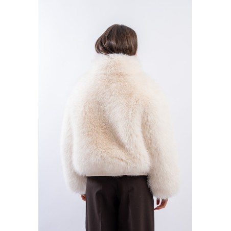 Bomber realizzato in morbida ecopeliccia a pelo lungo. Presenta collo alto e avvolgente. Maniche e fondo rifiniti a costine. Fodera interna. Caldo e affascinante, un capo di grande effetto!