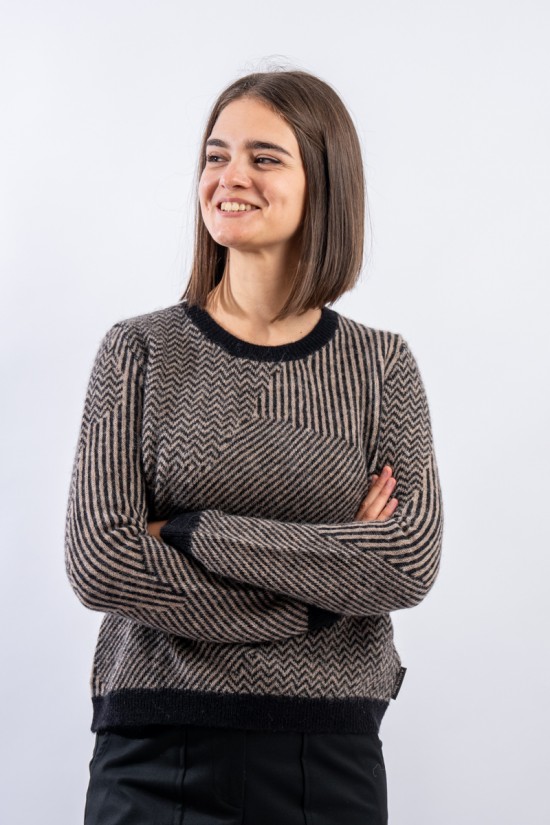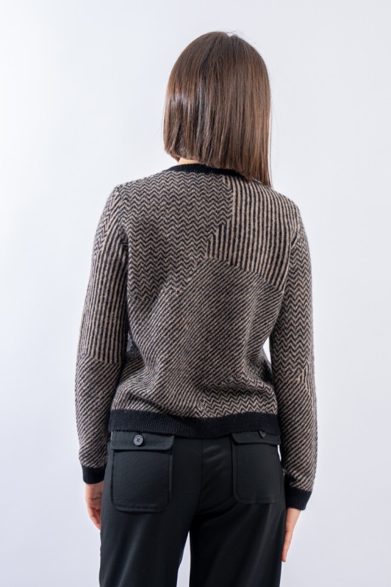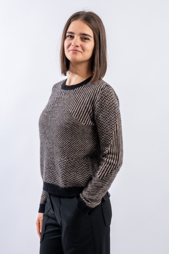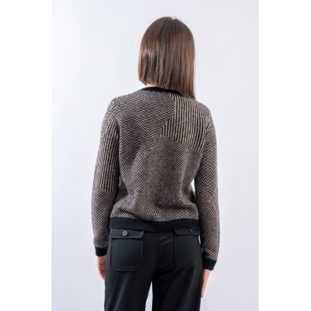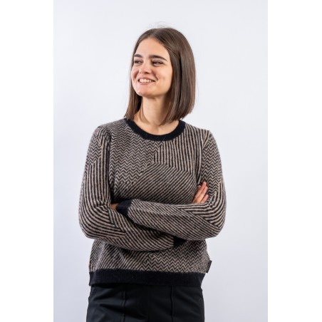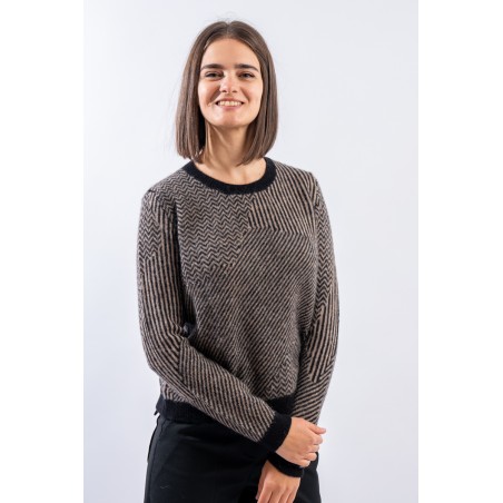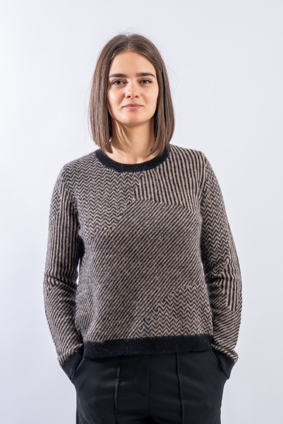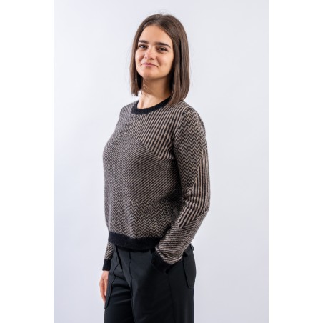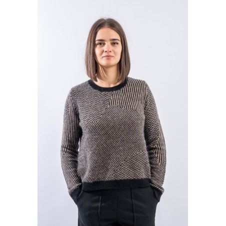 Maglia girocollo dal taglio boxy realizzata in un morbido filato di misto lana e alpaca. Impreziosita dal motivo spinato bicolore, è raffinata e versatile. Vestibilità regolare. Made in Italy.