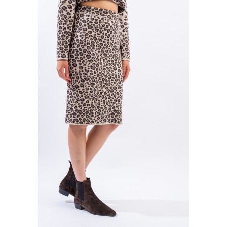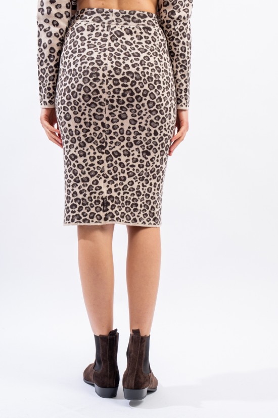 Longuette in maglia realizzata in fantasia maculata con inserto in lurex. Slim fit. Made in Italy.