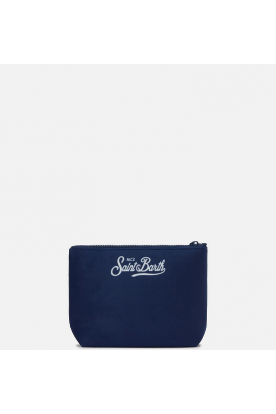Pochette Aline realizzata in morbido tessuto scuba effetto velluto e impreziosita dalla stampa sul davanti. Chiusura con zip e passante per polso in gros-grain. Ideale per conservare l'essenziale con stile e divertimento firmati Saint Barth.