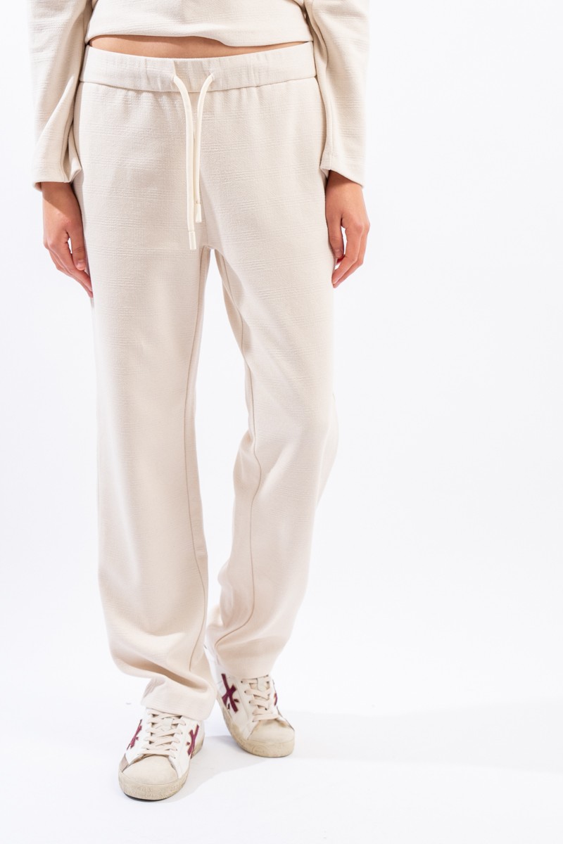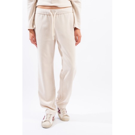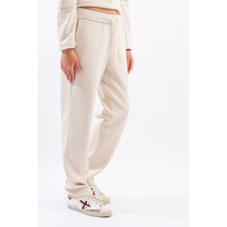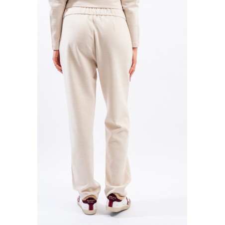 Pantalone jogger realizzato in un piacevole mix di cotone e viscosa stretch con trama principe di galles tono su tono. Presenta coulisse in vita regolabile e tasche verticali. Pratico e versatile, perfetto da combinare alla maglia nella stessa texture.