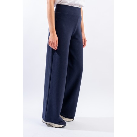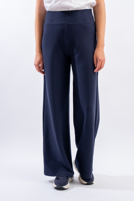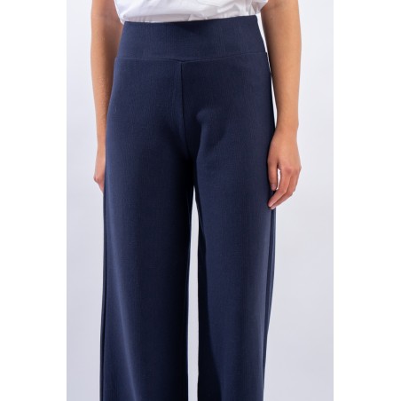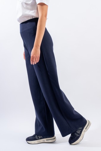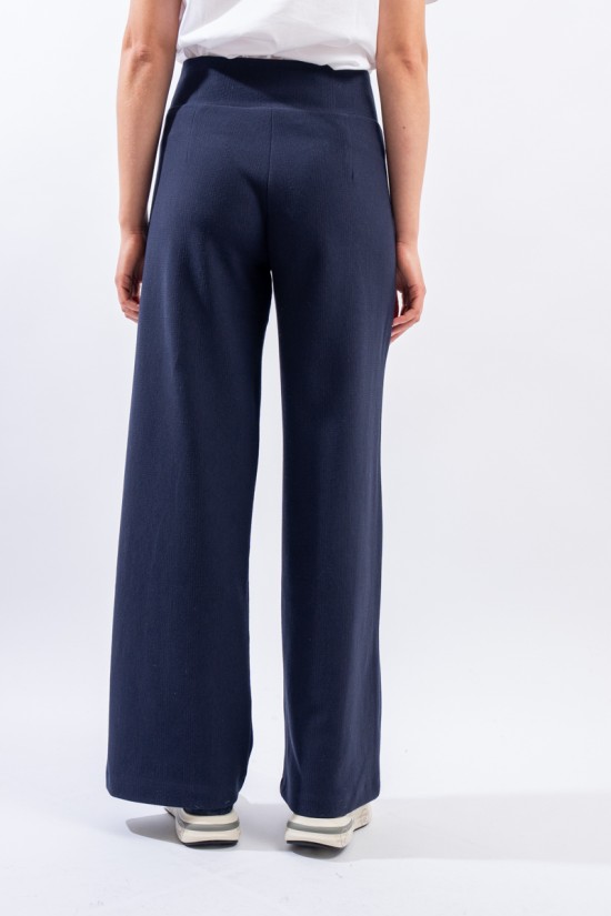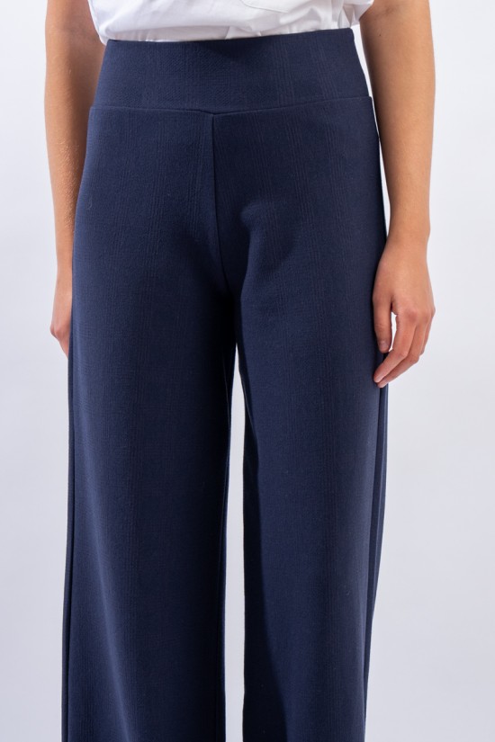 Pantalone a palazzo realizzato in un piacevole mix di cotone e viscosa stretch con trama principe di galles tono su tono. Presenta una fascia elasticizzata sul punto vita per un comfort ottimale. Gamba ampia e vestibilità regolare. Perfetta da coordinare alla giacca nella stessa texture.