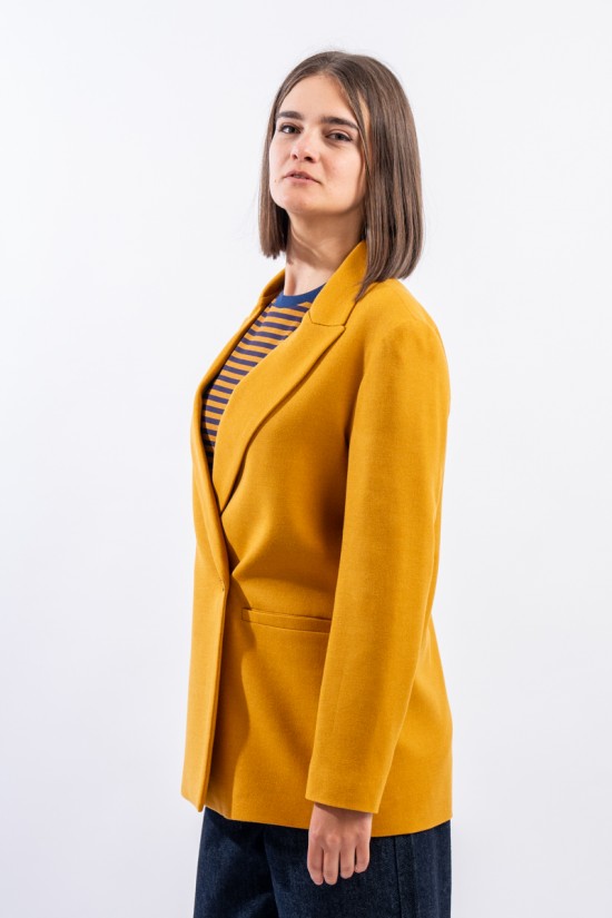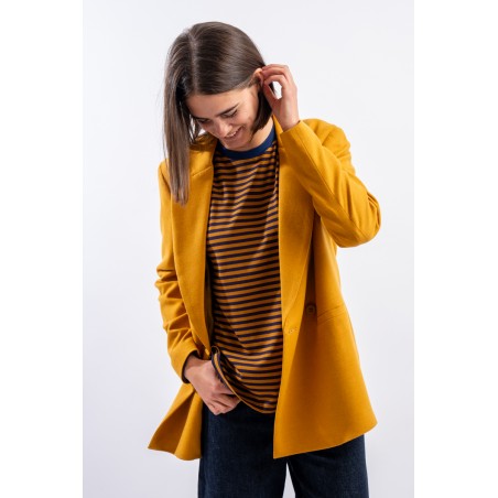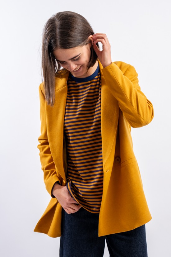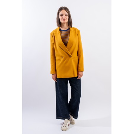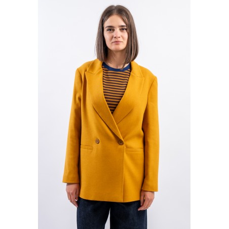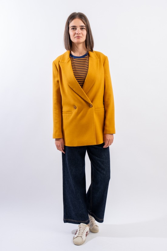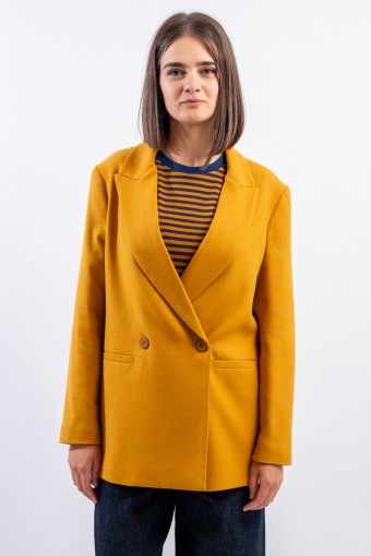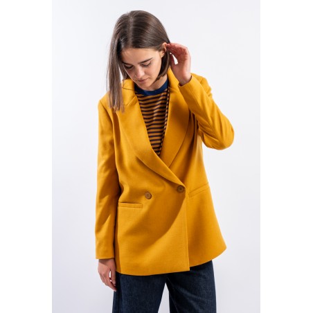 Giacca "easy" doppio petto dal taglio rilassato e informale. Presenta collo a revers, bottoncini gommati tono su tono e tasche a filetto. Realizzata in un piacevole mix di lana e viscosa con fodera interna.