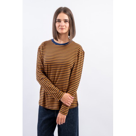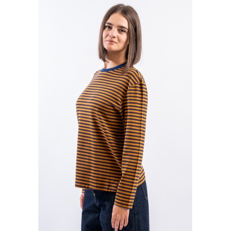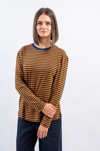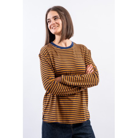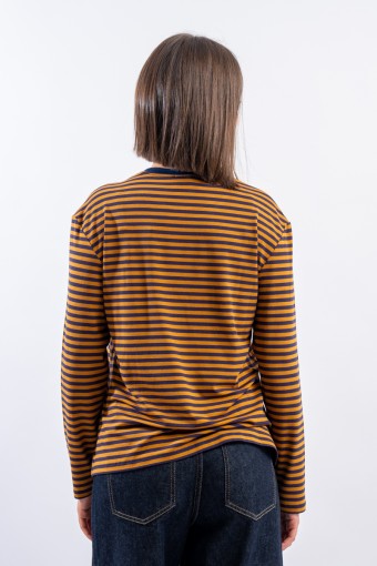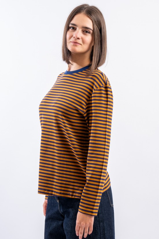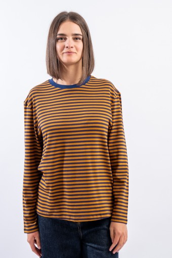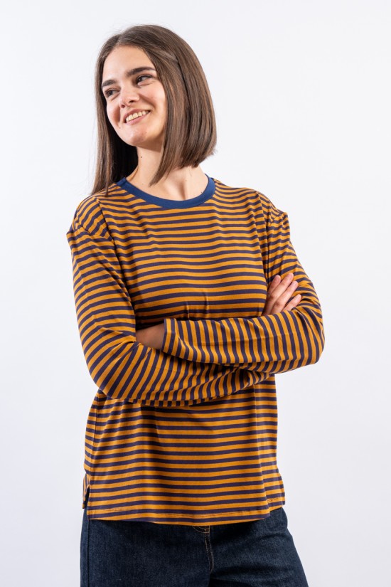 T-shirt girocollo a manica lunga dalla vestibilità regolare. Realizzata in viscosa stretch, risulta pratica e versatile per completare qualsiasi outfit. Presenta motivo a righe orizzontali bicolore e girocollo a contrasto.