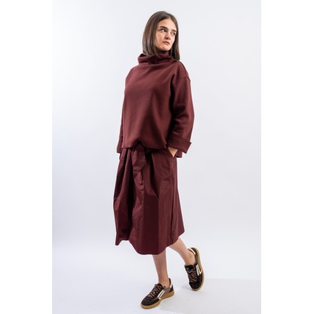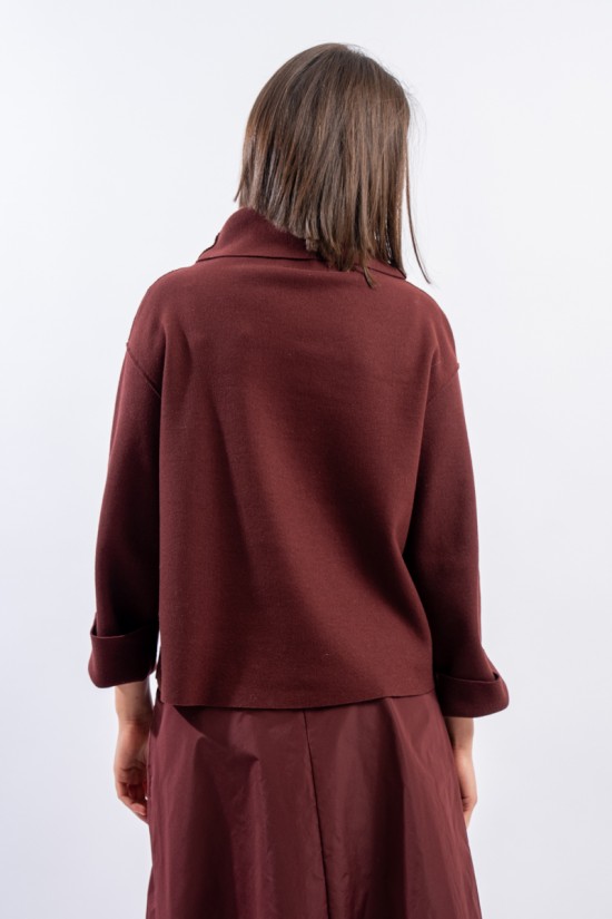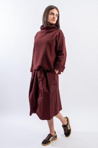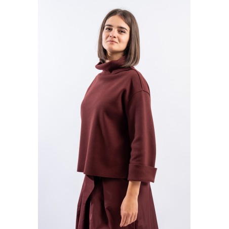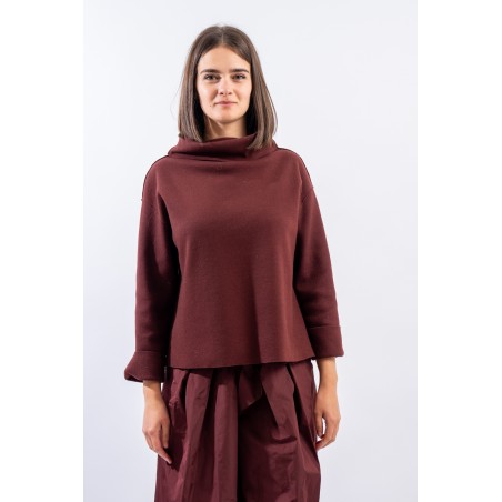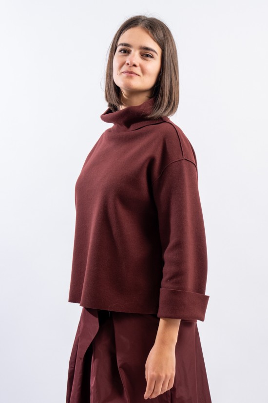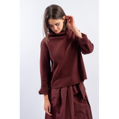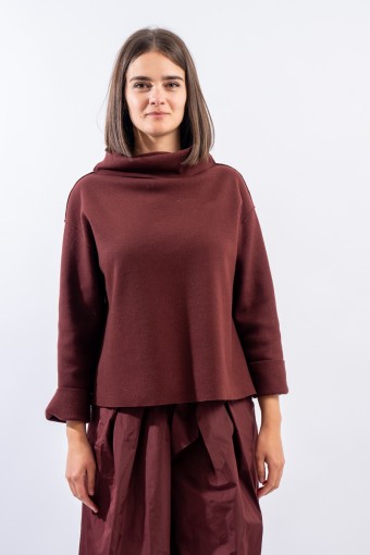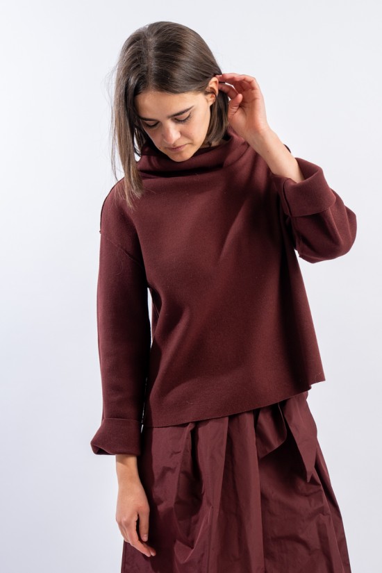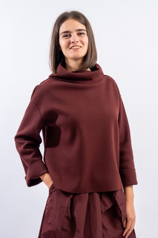 Uno dei capi più amati della collezione NIU è la maglia cappetta, realizzata in un morbido panno di lana. Presenta collo a vulcano, giro sceso e cuciture in rilievo. Sottile ma allo stesso tempo calda e avvolgente, perfetta per completatre qualsiasi outfit.