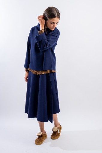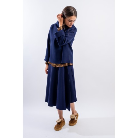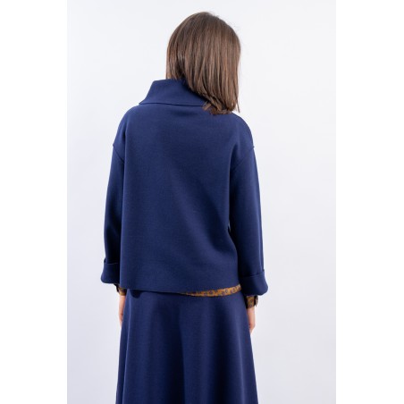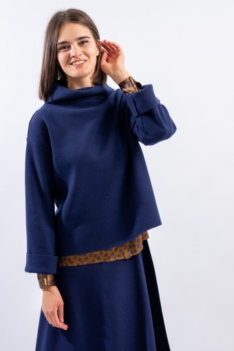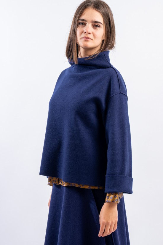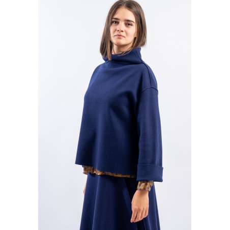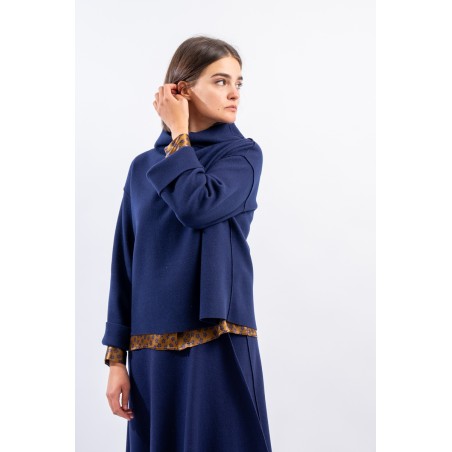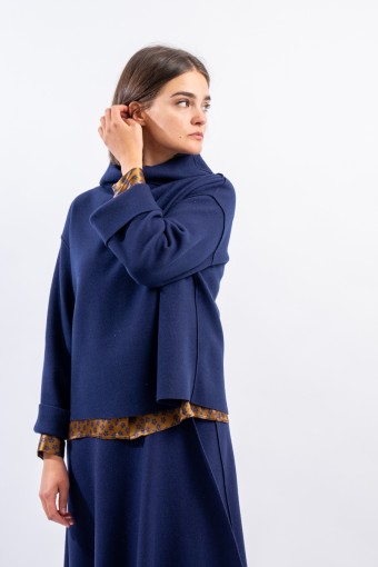 Uno dei capi più amati della collezione NIU è la maglia cappetta, realizzata in un morbido panno di lana. Presenta collo a vulcano, giro sceso e cuciture in rilievo. Sottile ma allo stesso tempo calda e avvolgente, perfetta per completatre qualsiasi outfit.