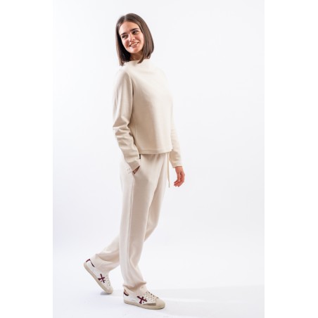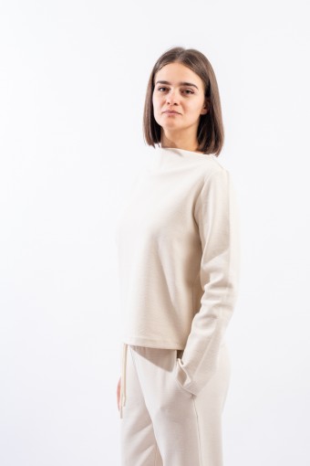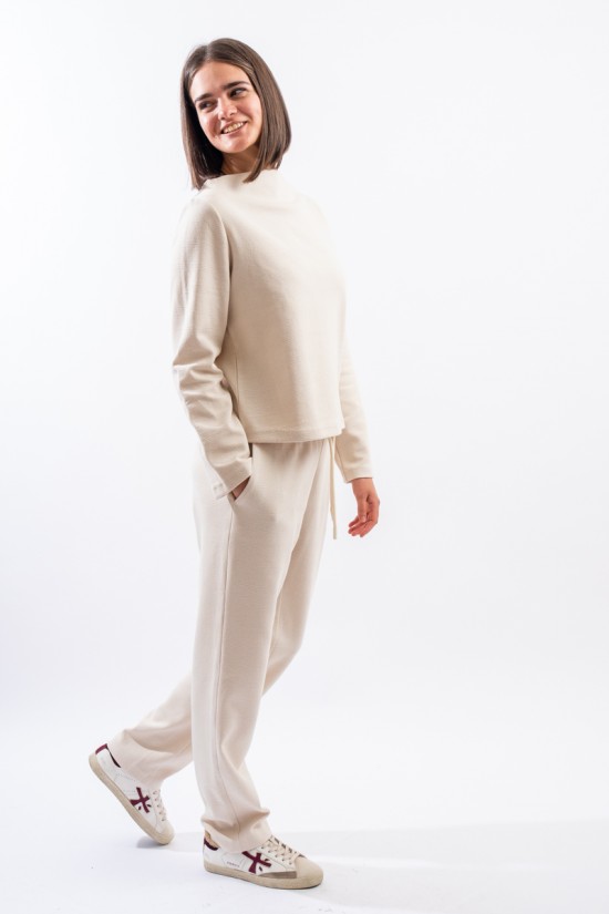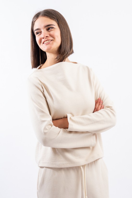 Maglia con collo a cratere dal taglio boxy. Realizzata in un piacevole mix di cotone e viscosa stretch con trama principe di galles tono su tono. Vestibilità slim fit. Perfetta da coordinare al suo pantalone con la stessa texture.